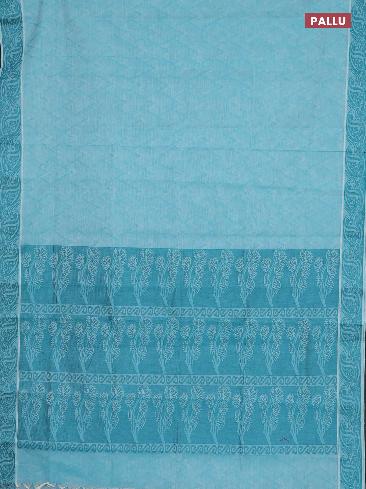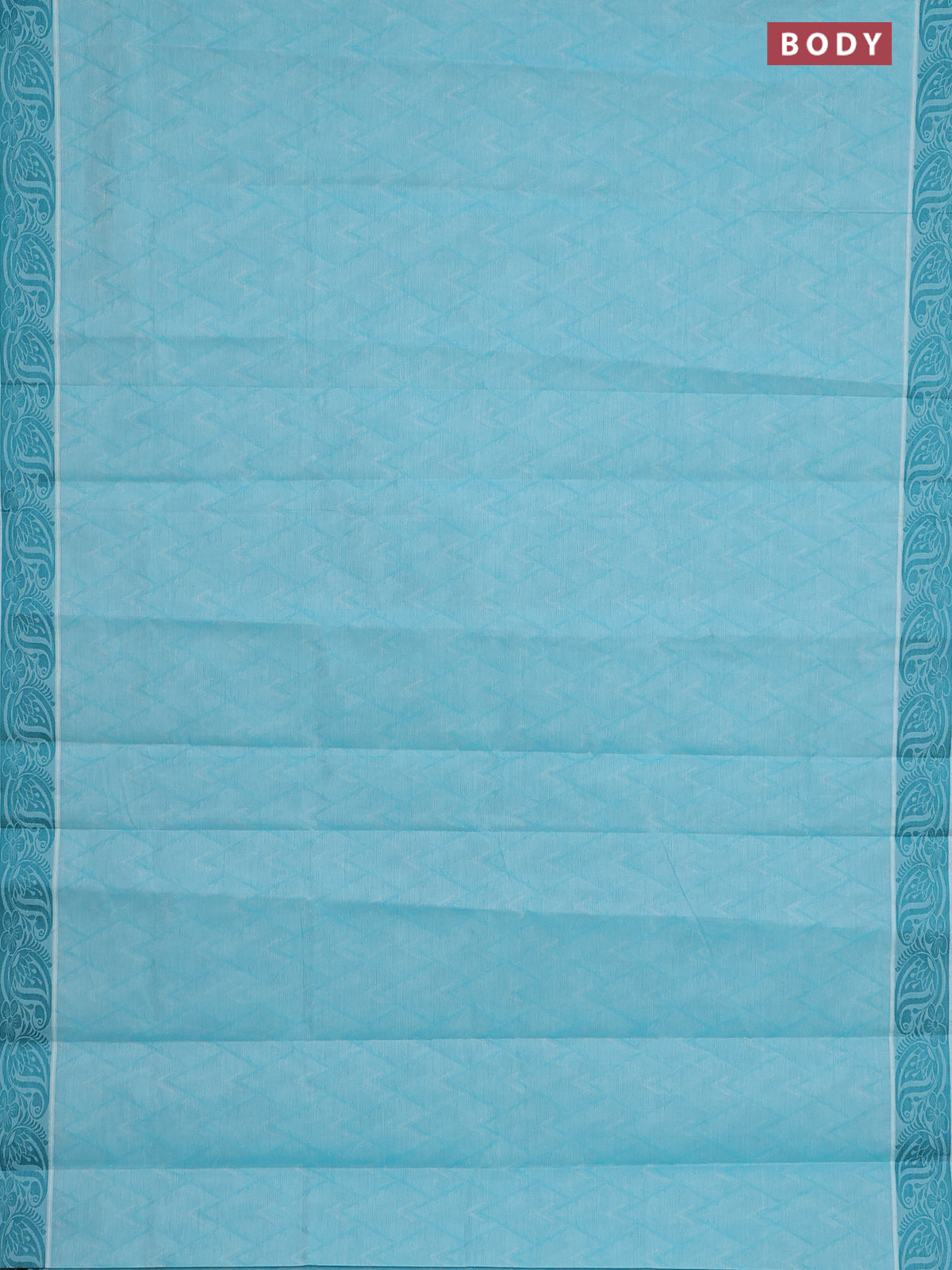 Coimbatore cotton saree teal blue with allover self emboss and thread woven border