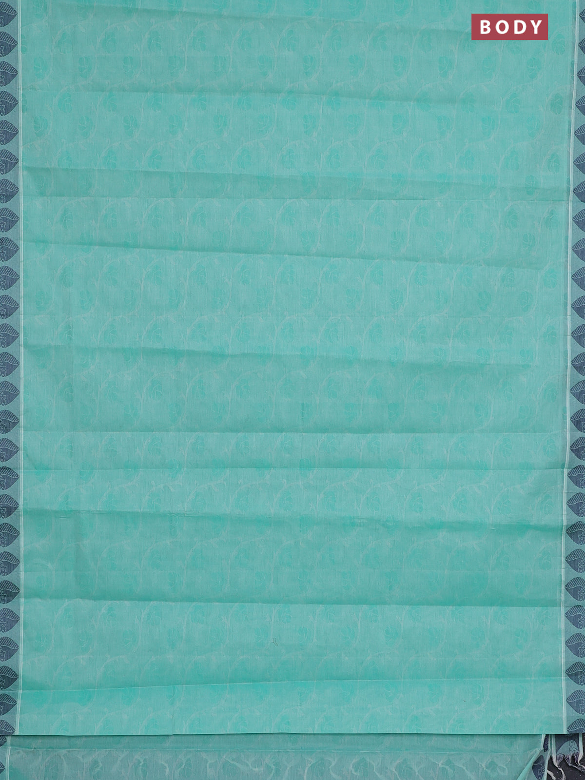 Coimbatore cotton saree teal gree shade with allover self emboss and thread woven border
