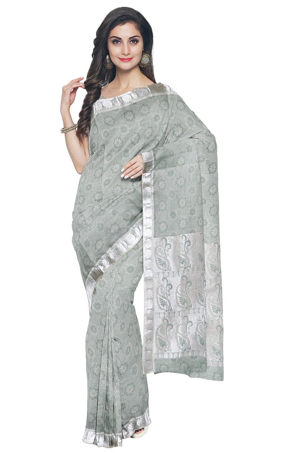 Coimbatore Cotton Silvar Zari Saree - Light Green