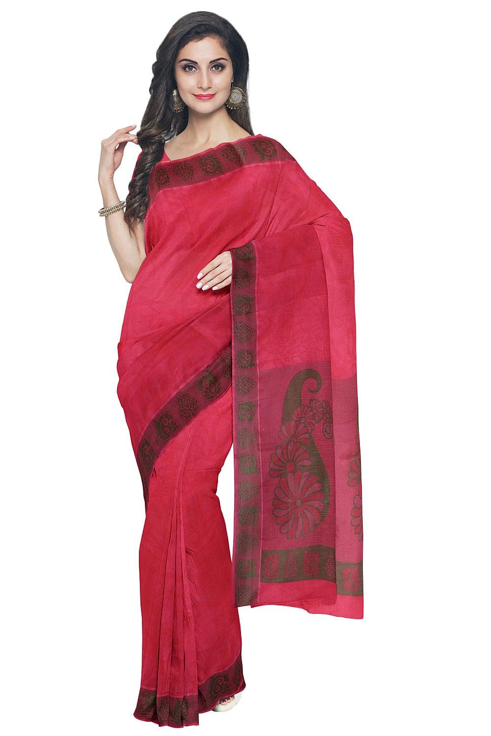 Coimbatore Emboss Cotton Saree - Rose Pink