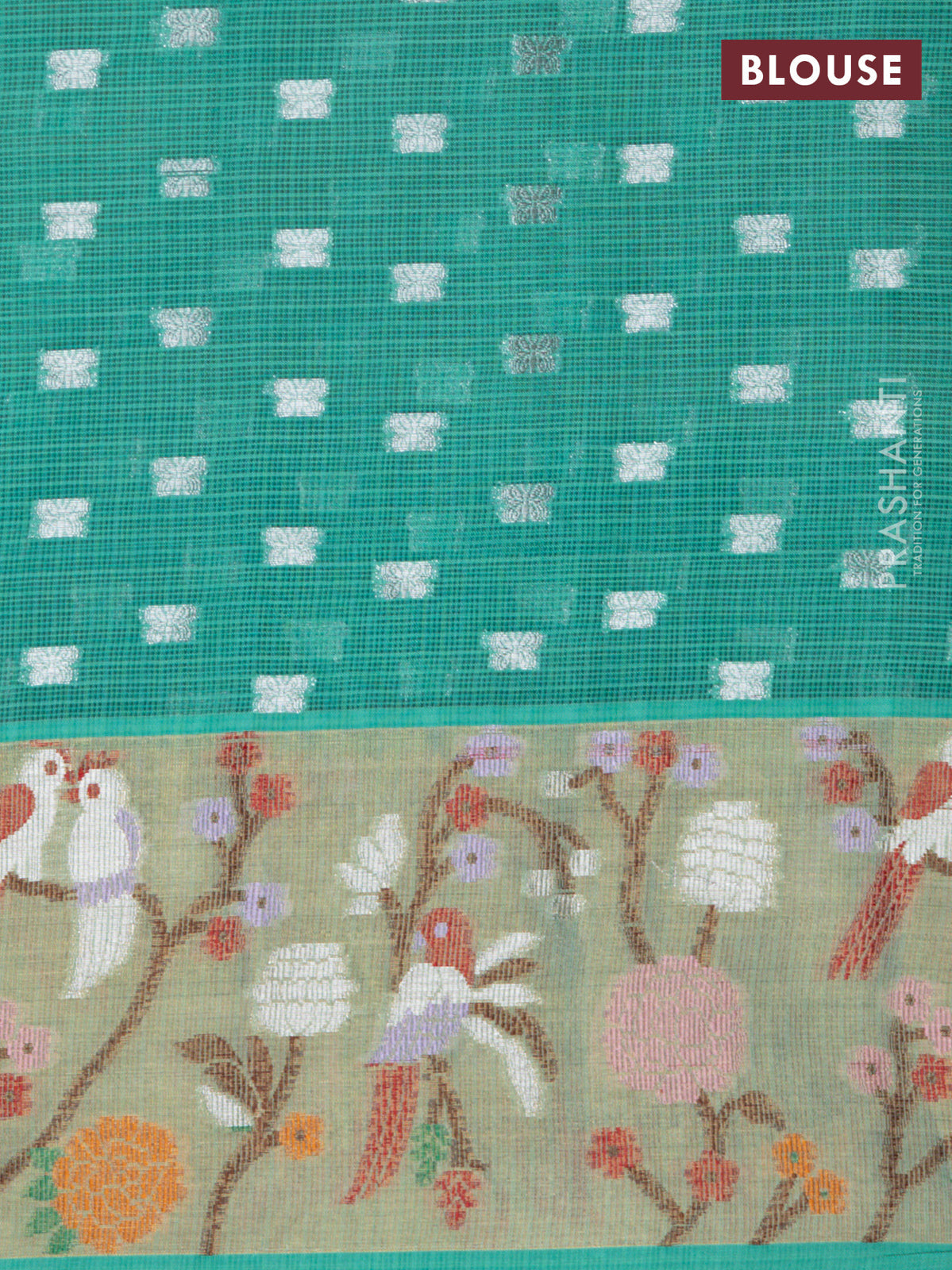Cotton zari kota lehenga pink and green with silver zari woven buttas and jamdhani border