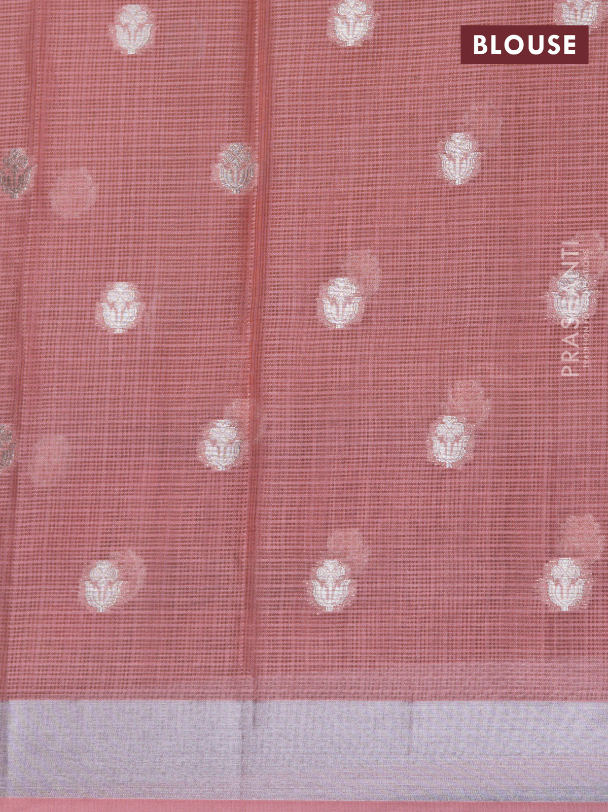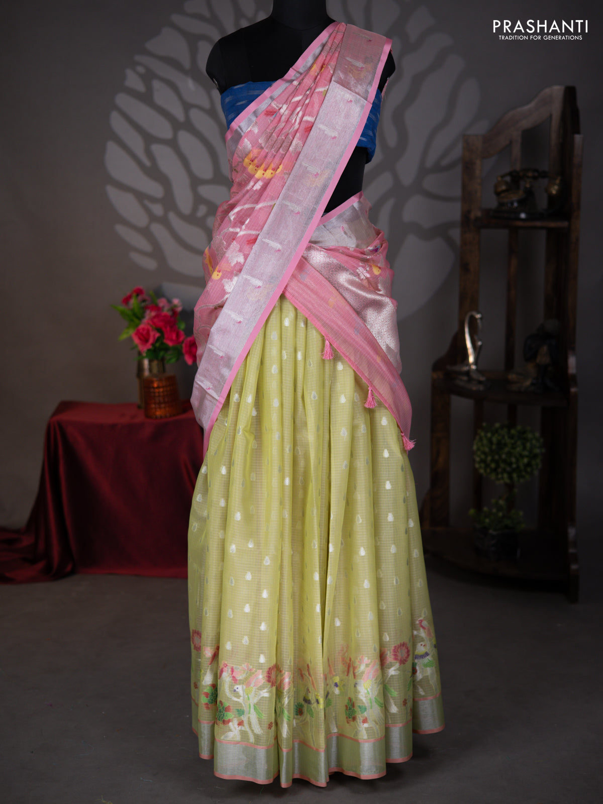 Cotton zari kota lehenga pista green and pink with allover jamdhani weaves and silver zari woven border