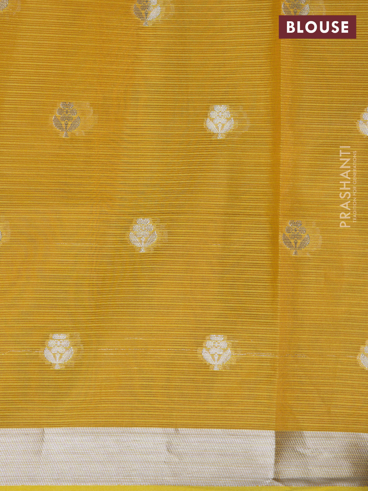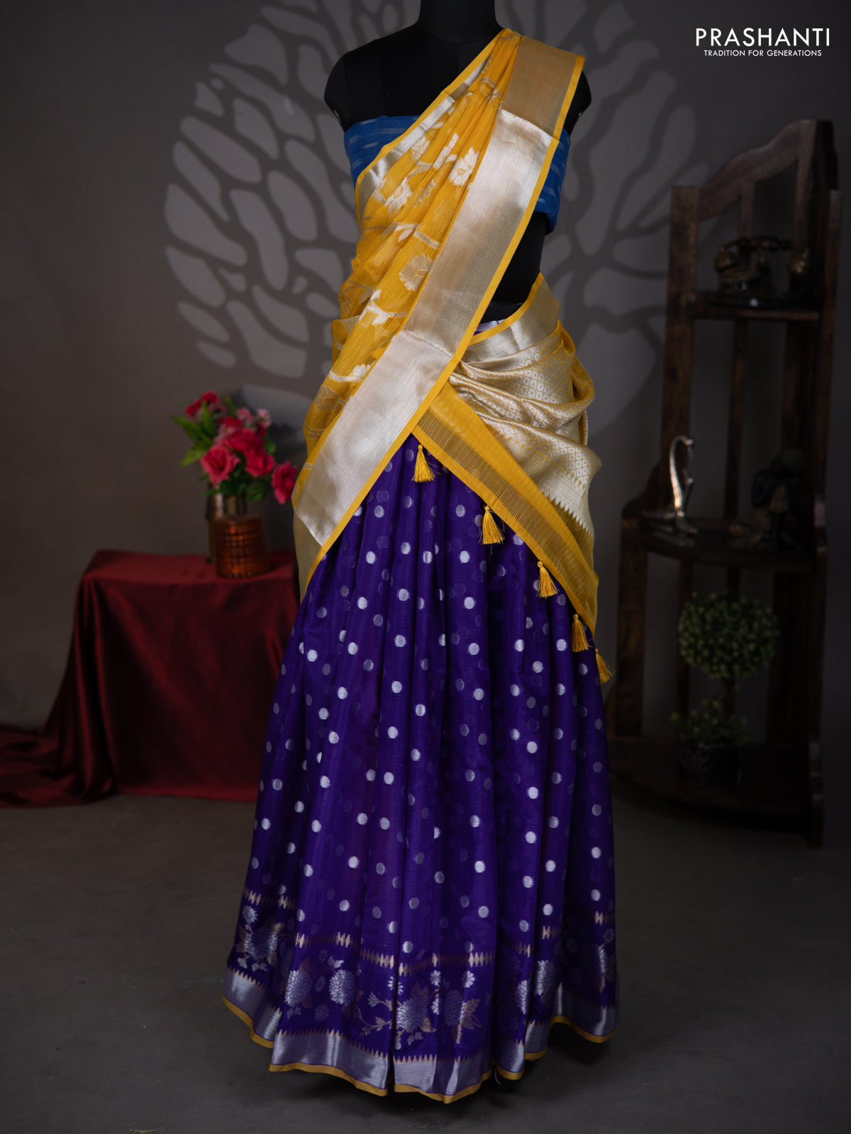 Cotton zari kota lehenga voilet and yellow with silver zari woven buttas and floral zari woven border