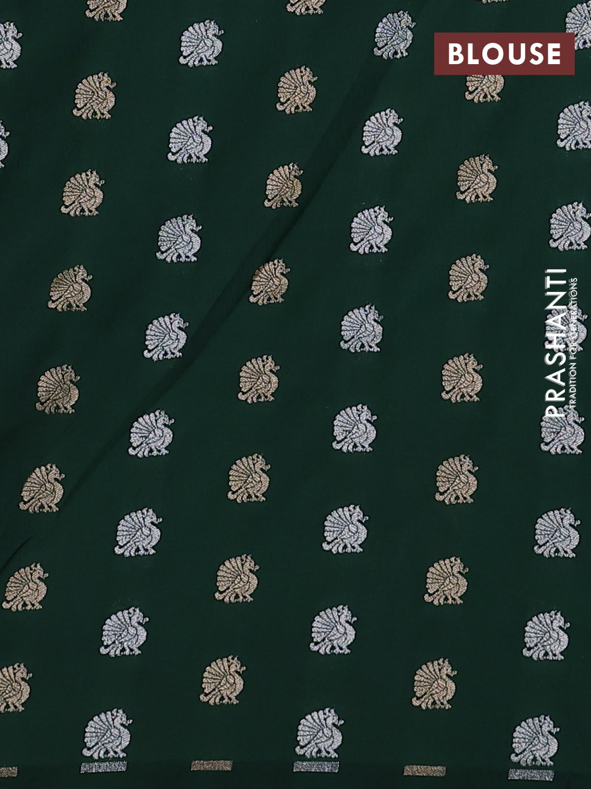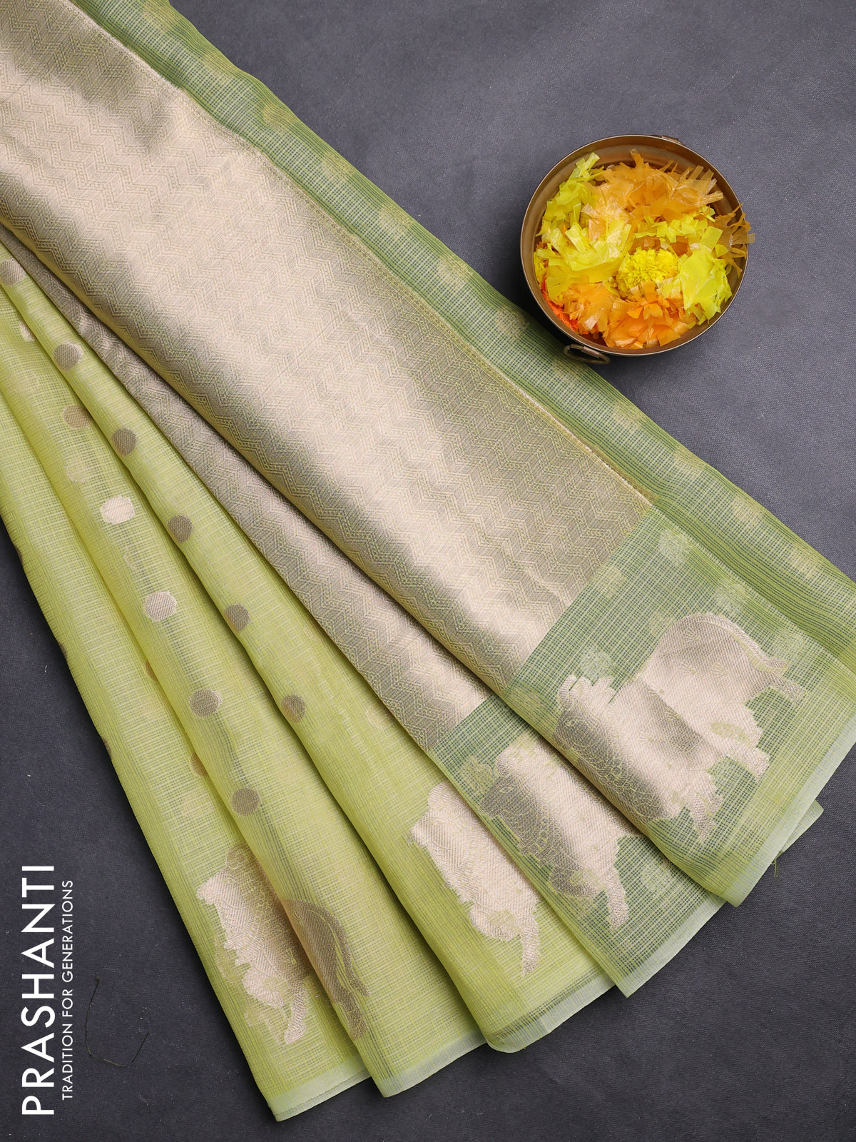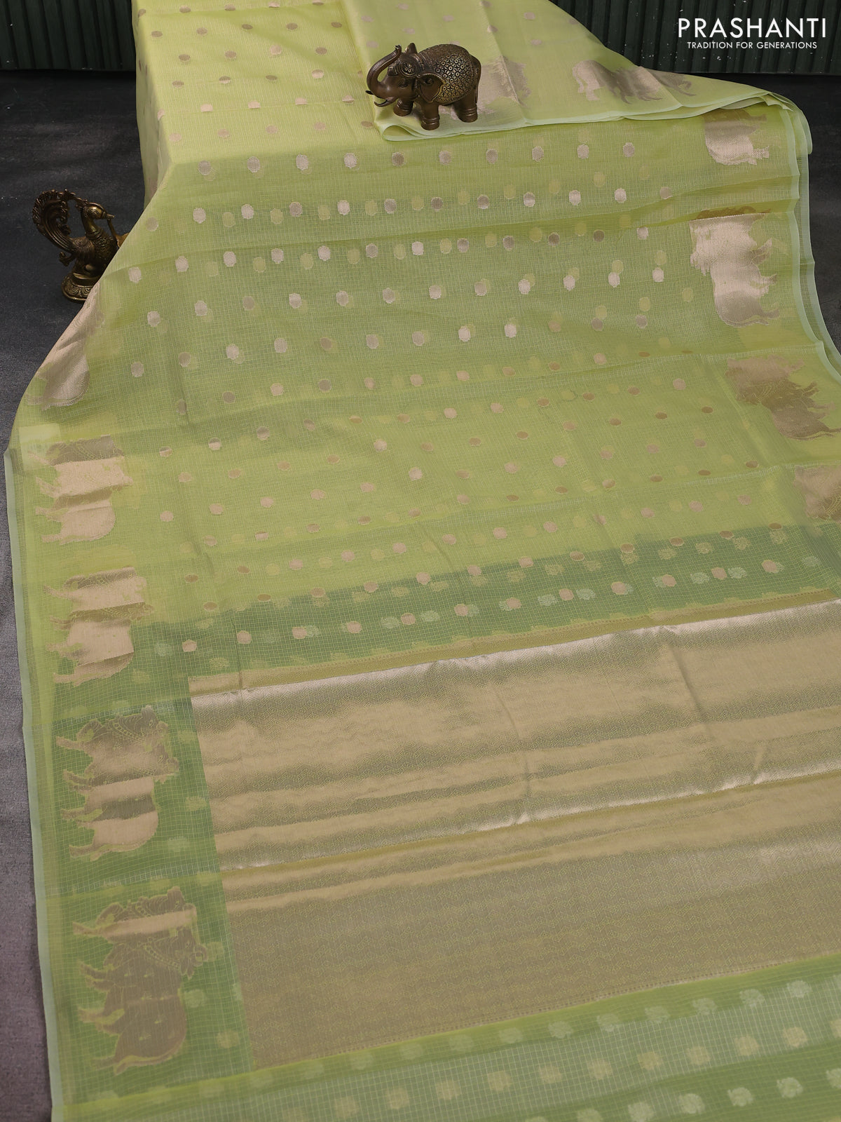 Cotton zari kota saree fluorescent green and bottle green with zari woven geometric buttas and zari woven pichwai buttas
