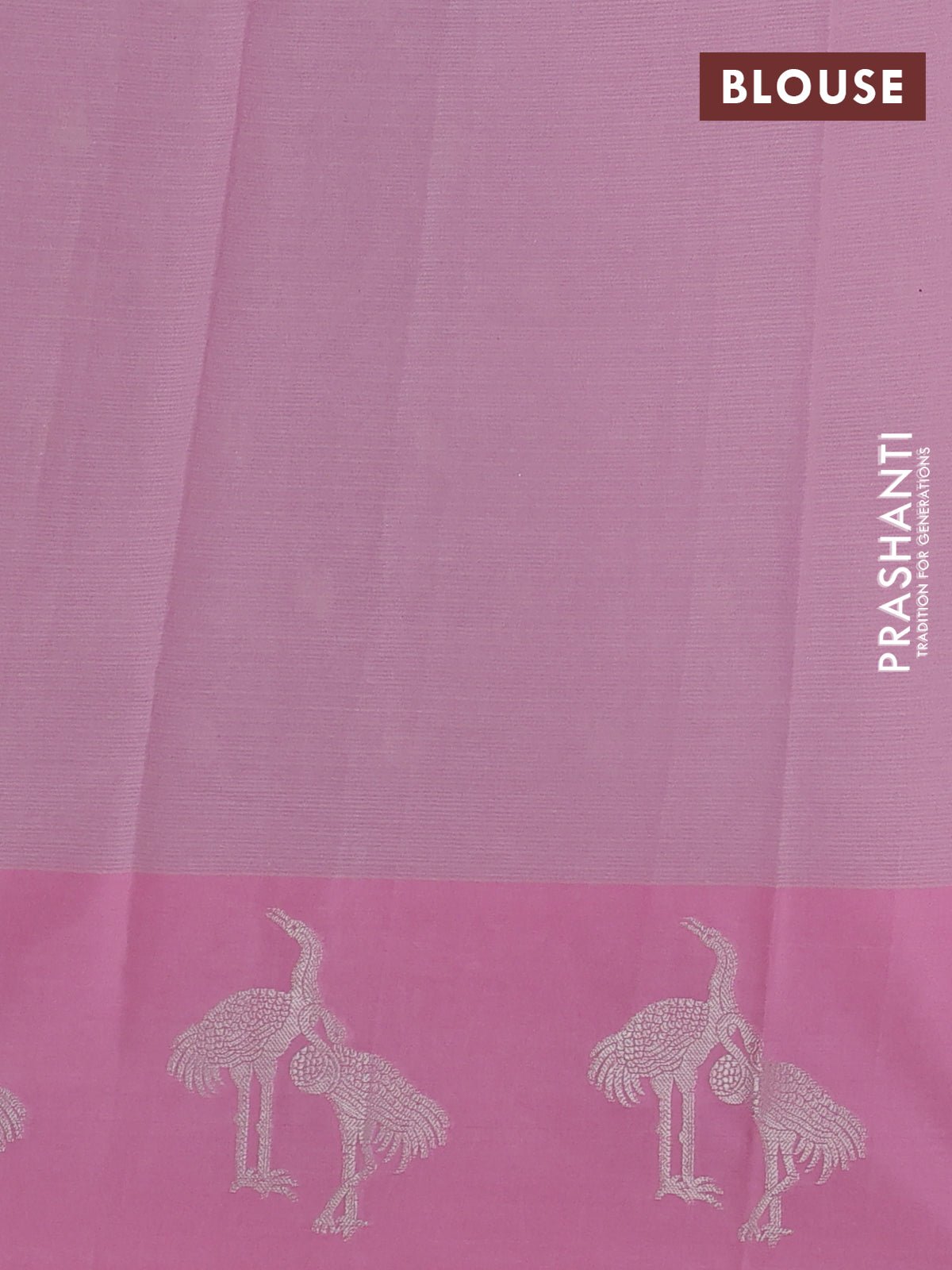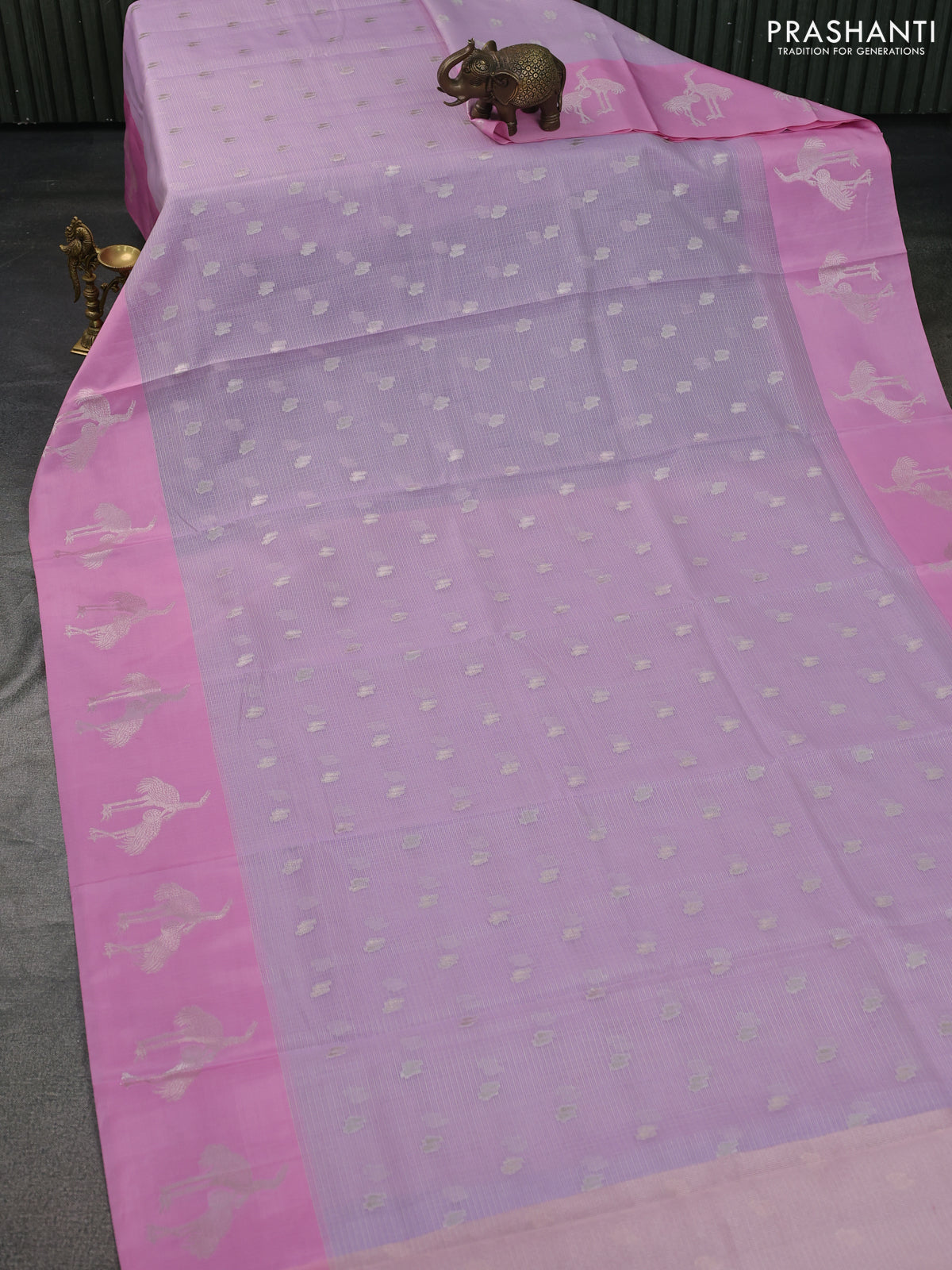 Cotton zari kota saree lavender and light pink with silver zari woven buttas and zari woven butta border