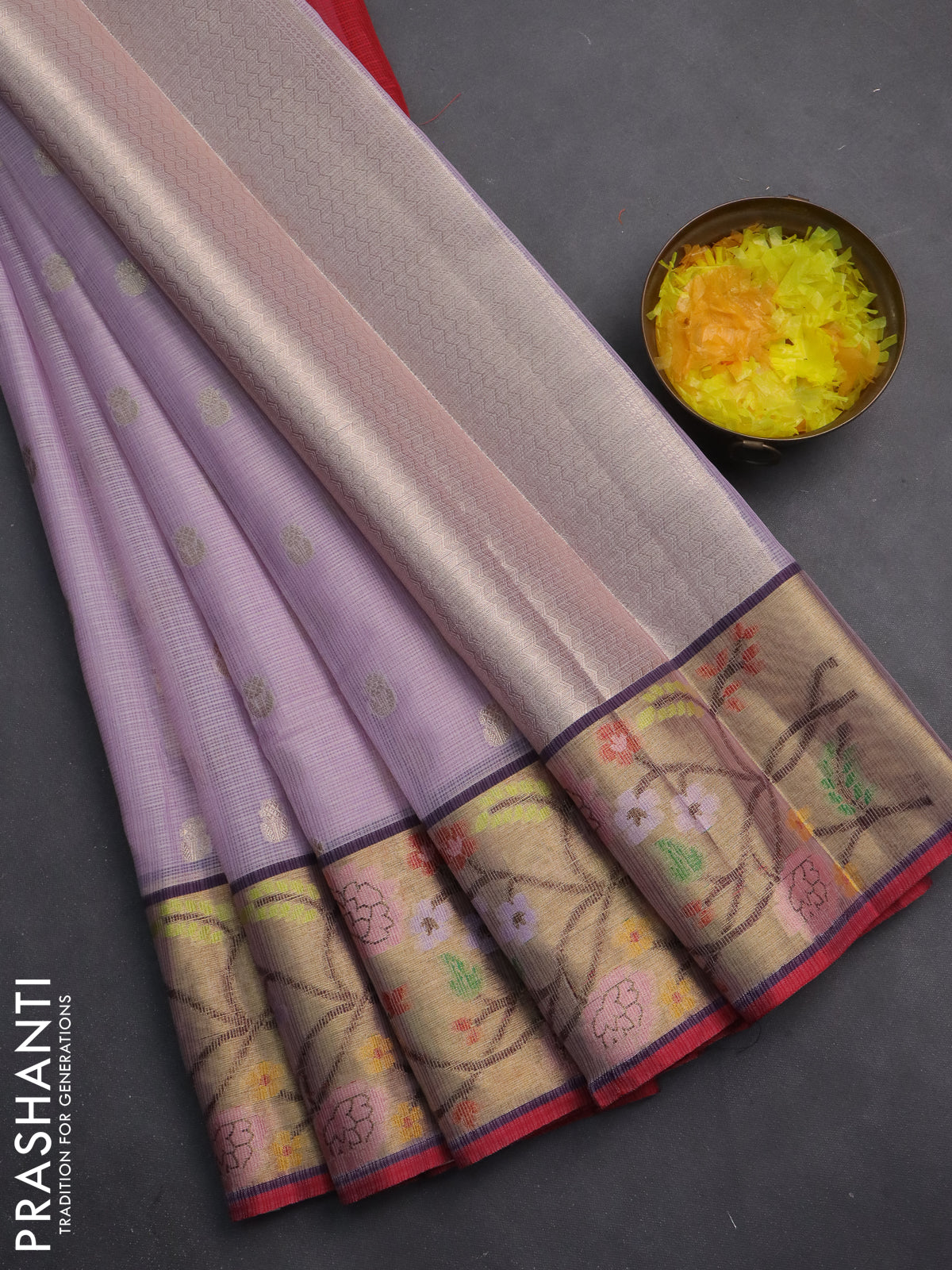 Cotton zari kota saree lavender and pink with zari woven buttas and zari woven paithani style border