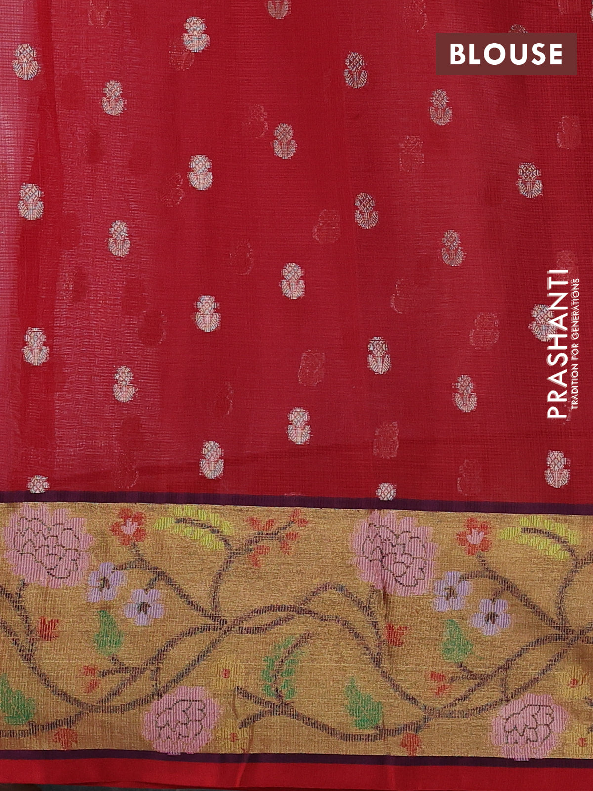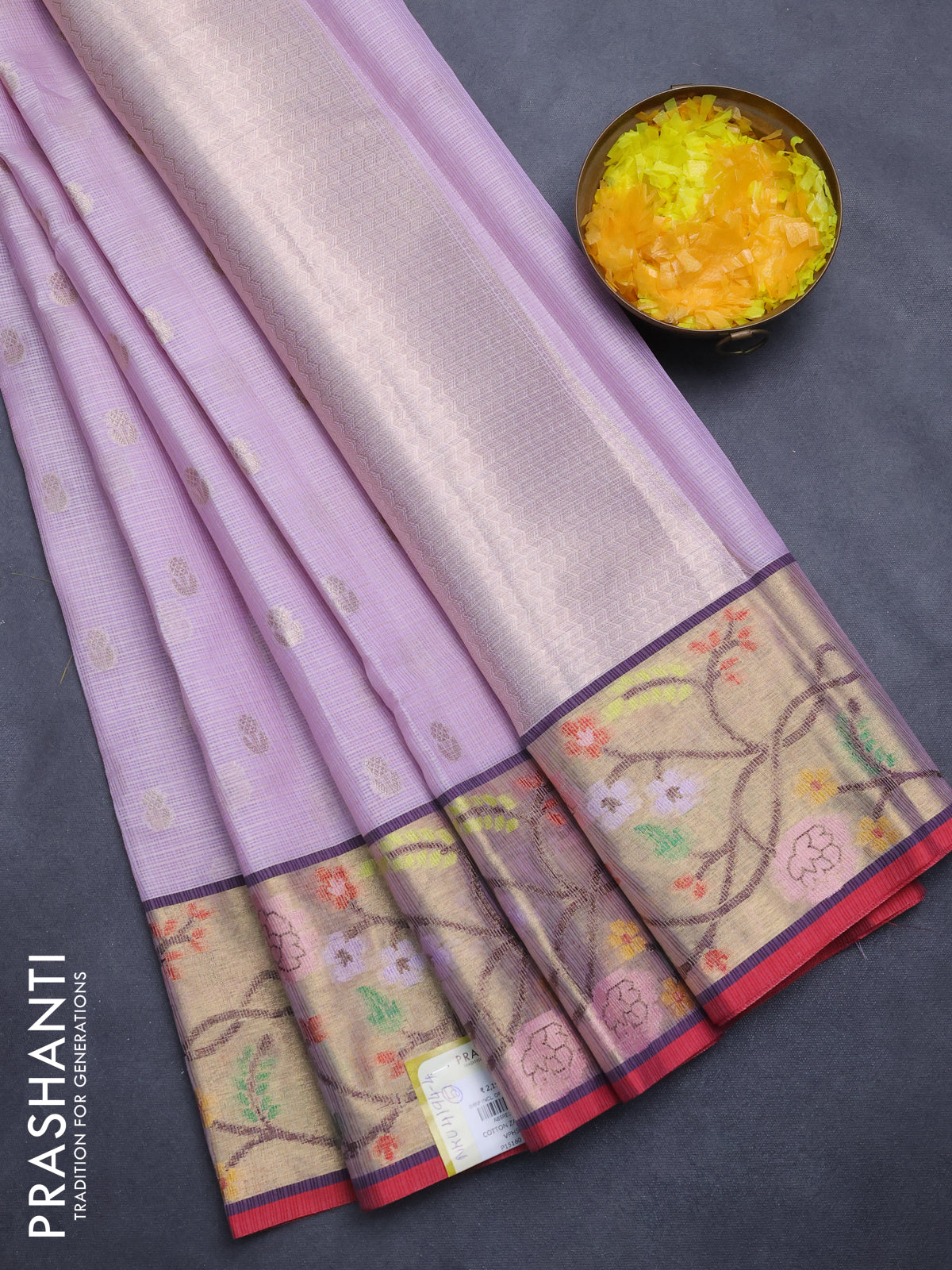 Cotton zari kota saree lavender with zari woven buttas and zari woven paithani style border