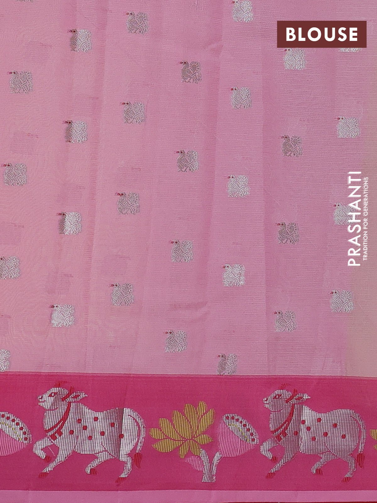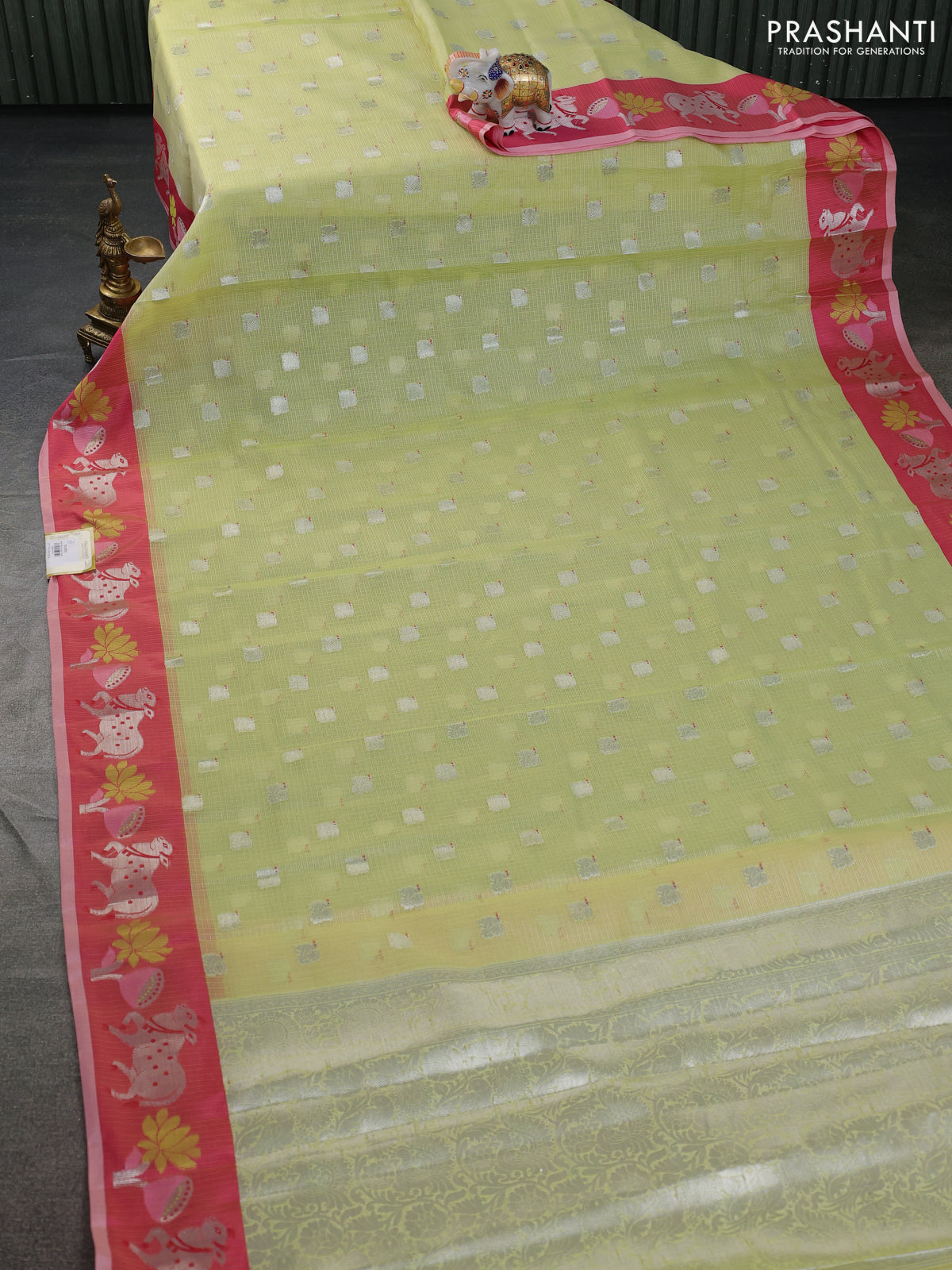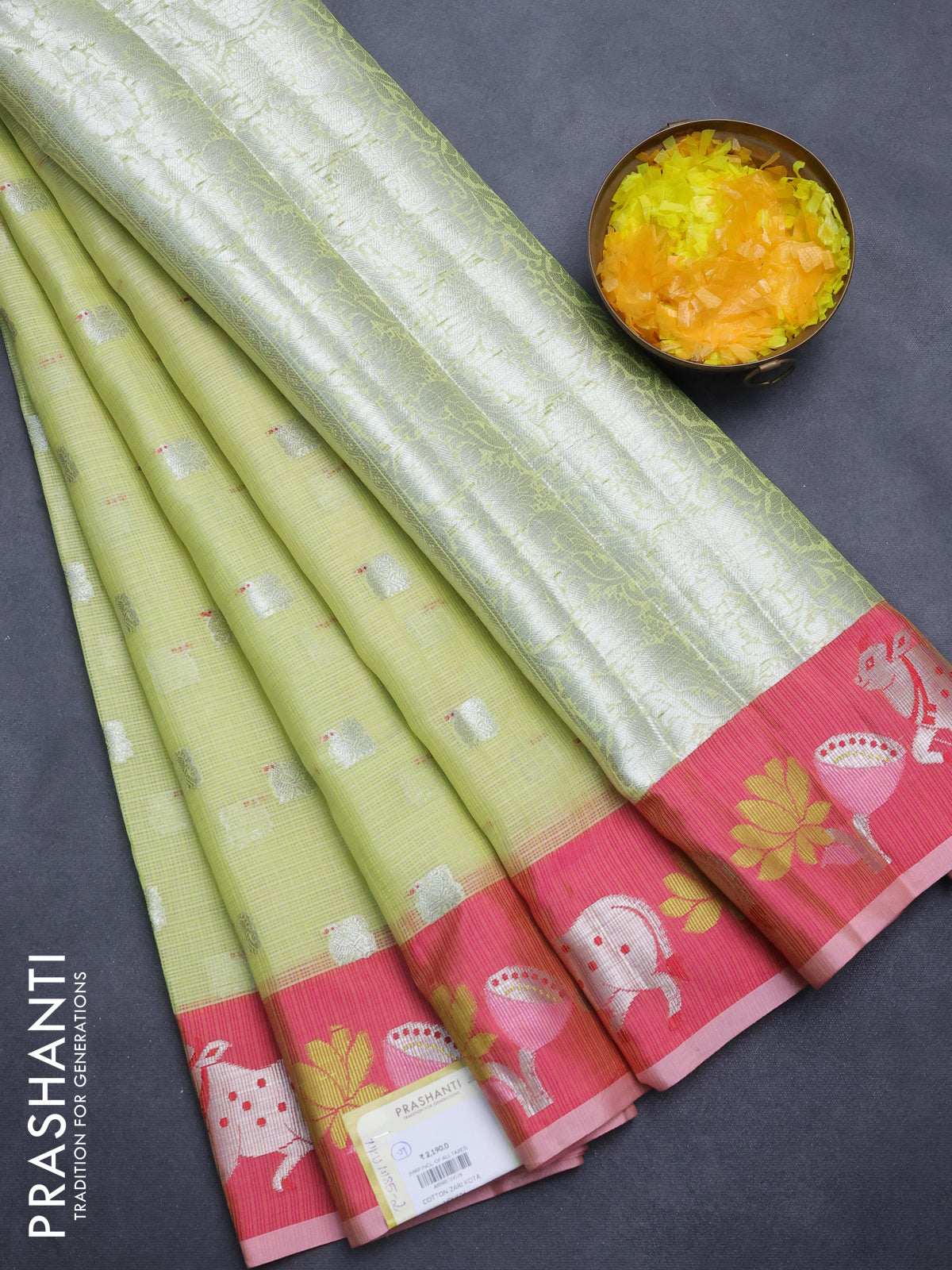 Cotton zari kota saree mild pista green and pink with silver zari woven buttas and pichwai design zari border