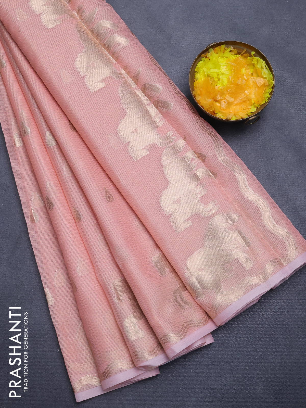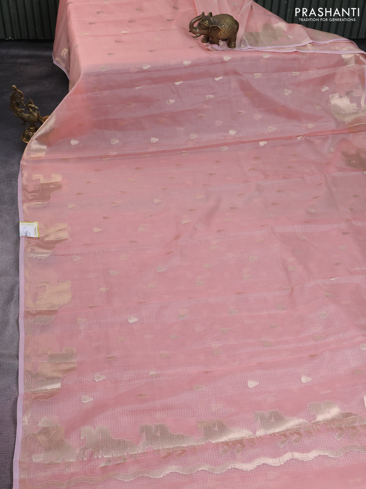 Cotton zari kota saree peach shade with zari woven buttas and zari woven butta border