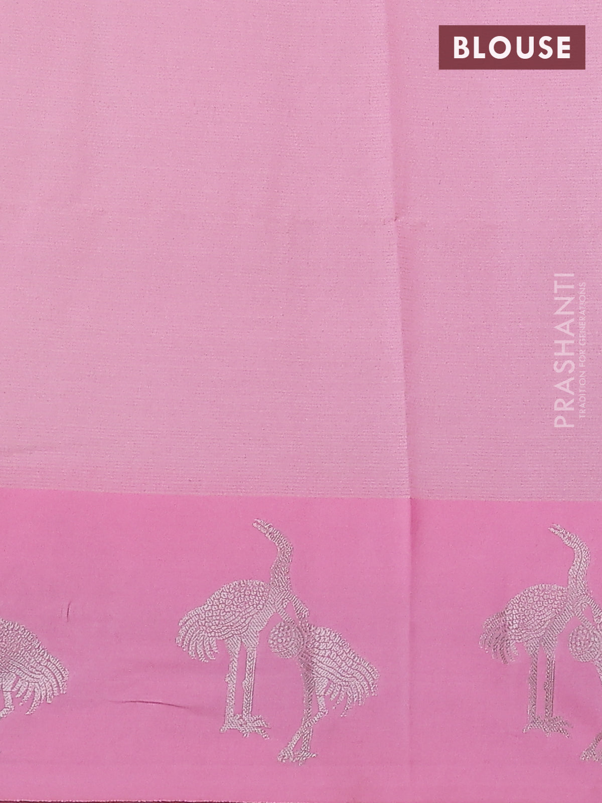 Cotton zari kota saree teal green and light pink with silver zari woven buttas and zari woven butta border