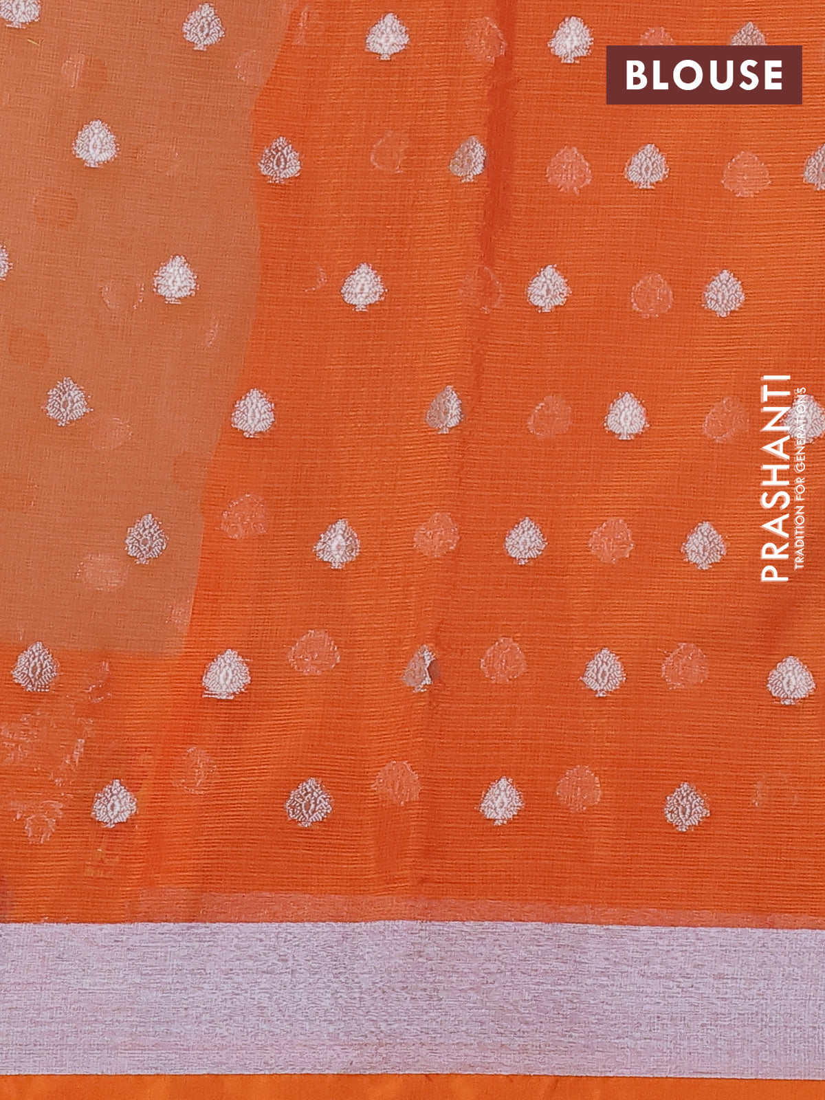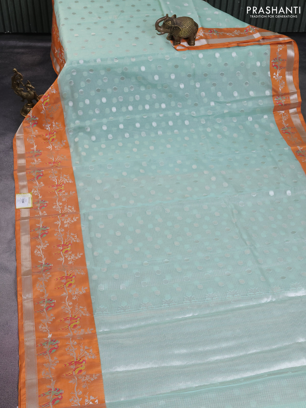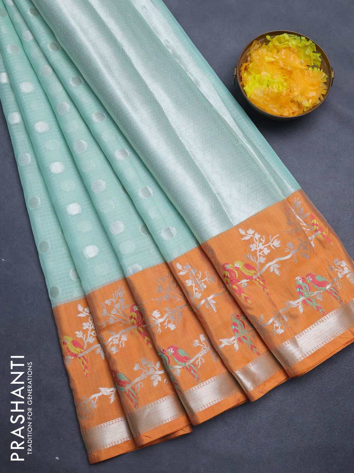 Cotton zari kota saree teal green and orange with silver zari woven buttas and thread & silver zari woven border