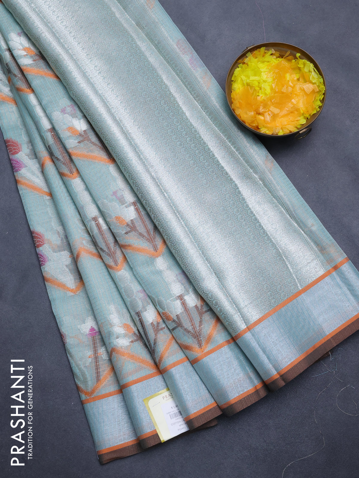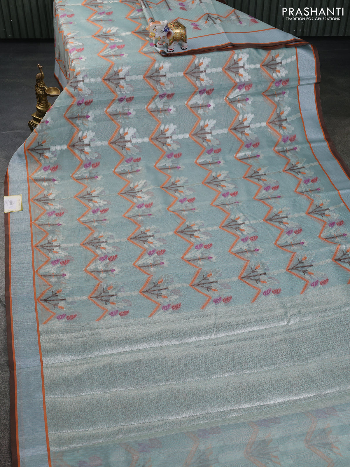 Cotton zari kota tissue saree pastel blue with allover thread & silver zari weaves and silver zari woven border