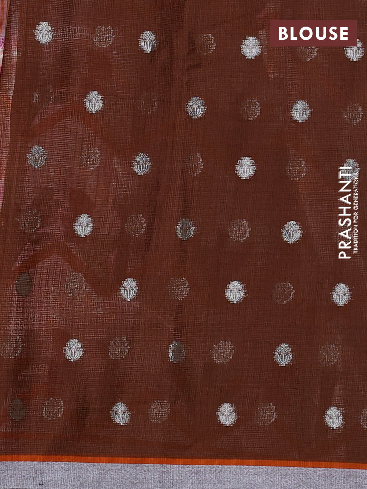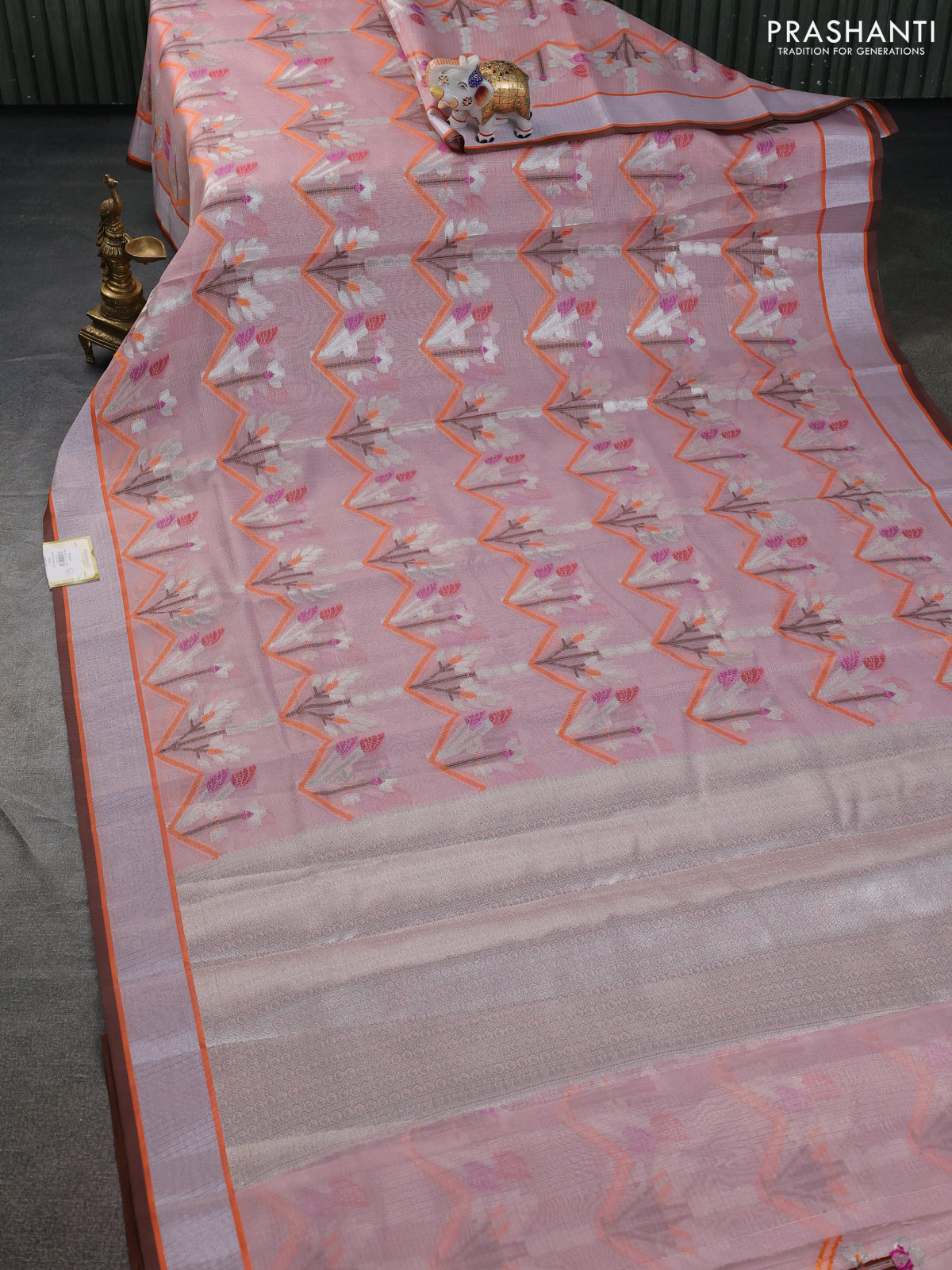 Cotton zari kota tissue saree pastel pink with allover thread & silver zari weaves and silver zari woven border