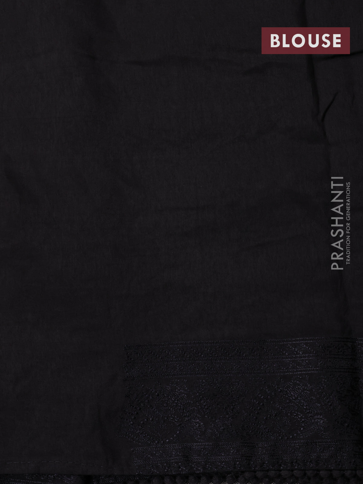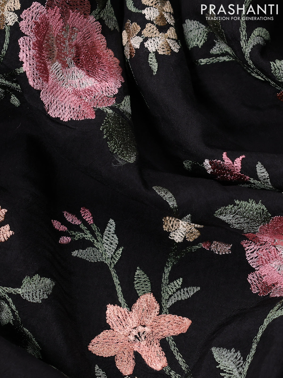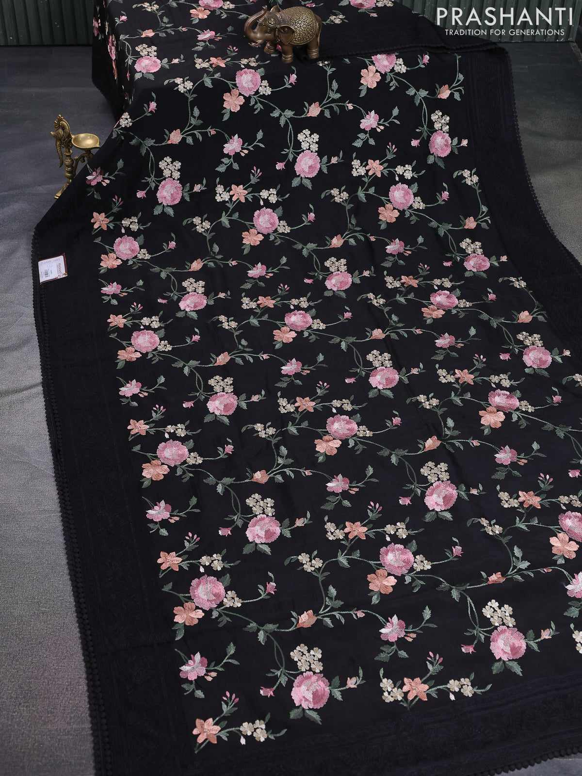 Dola silk saree black with allover floral embroidery work and chikankari work border