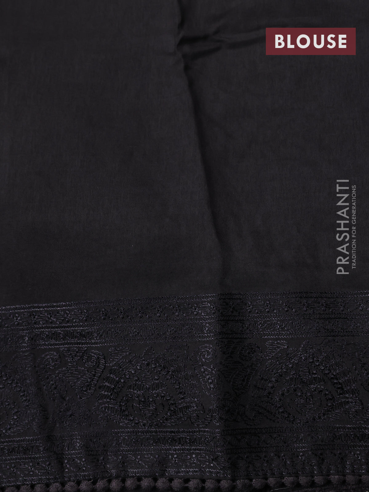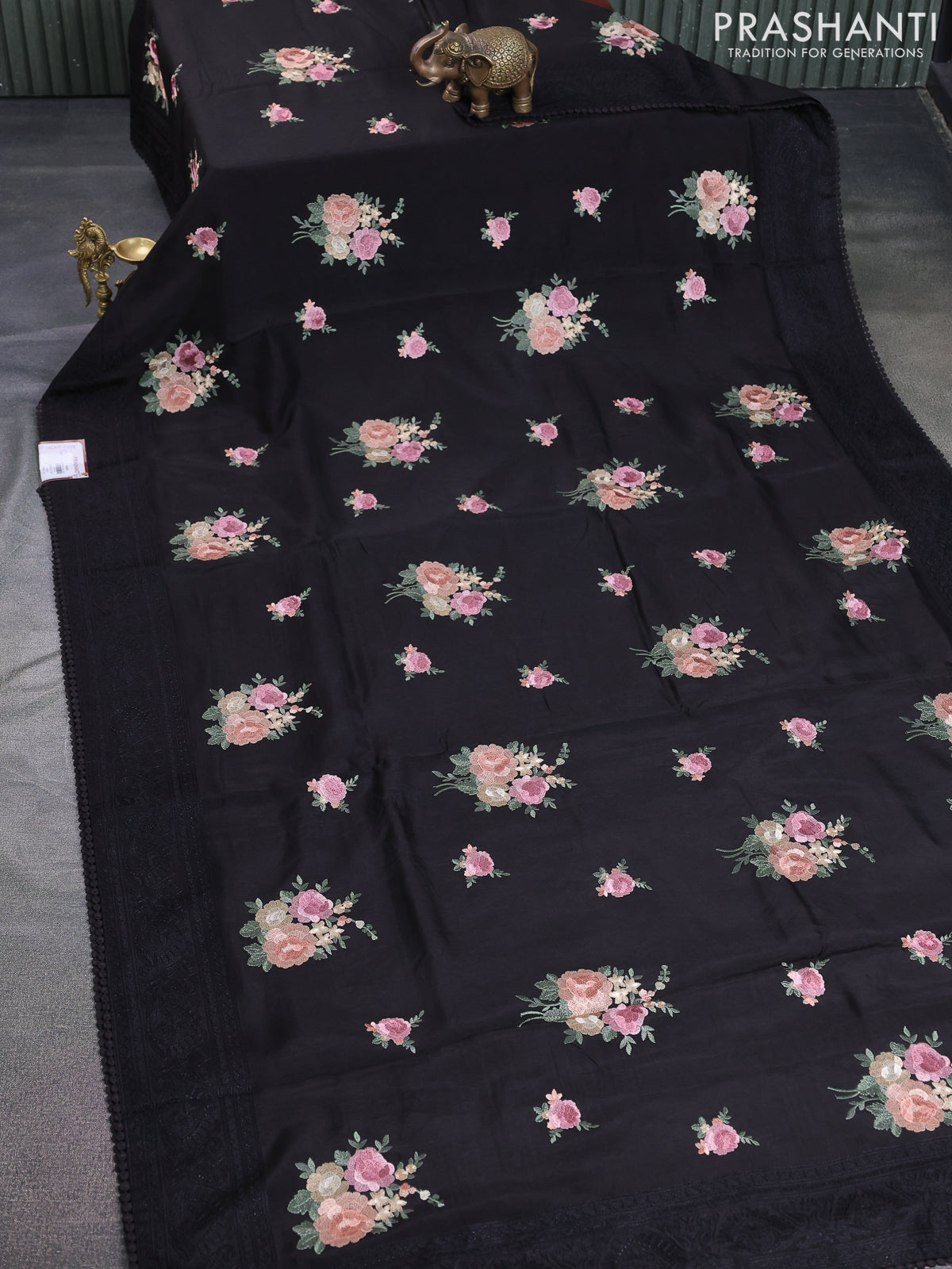 Dola silk saree black with allover floral embroidery work and chikankari work border