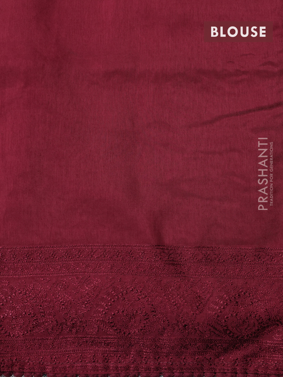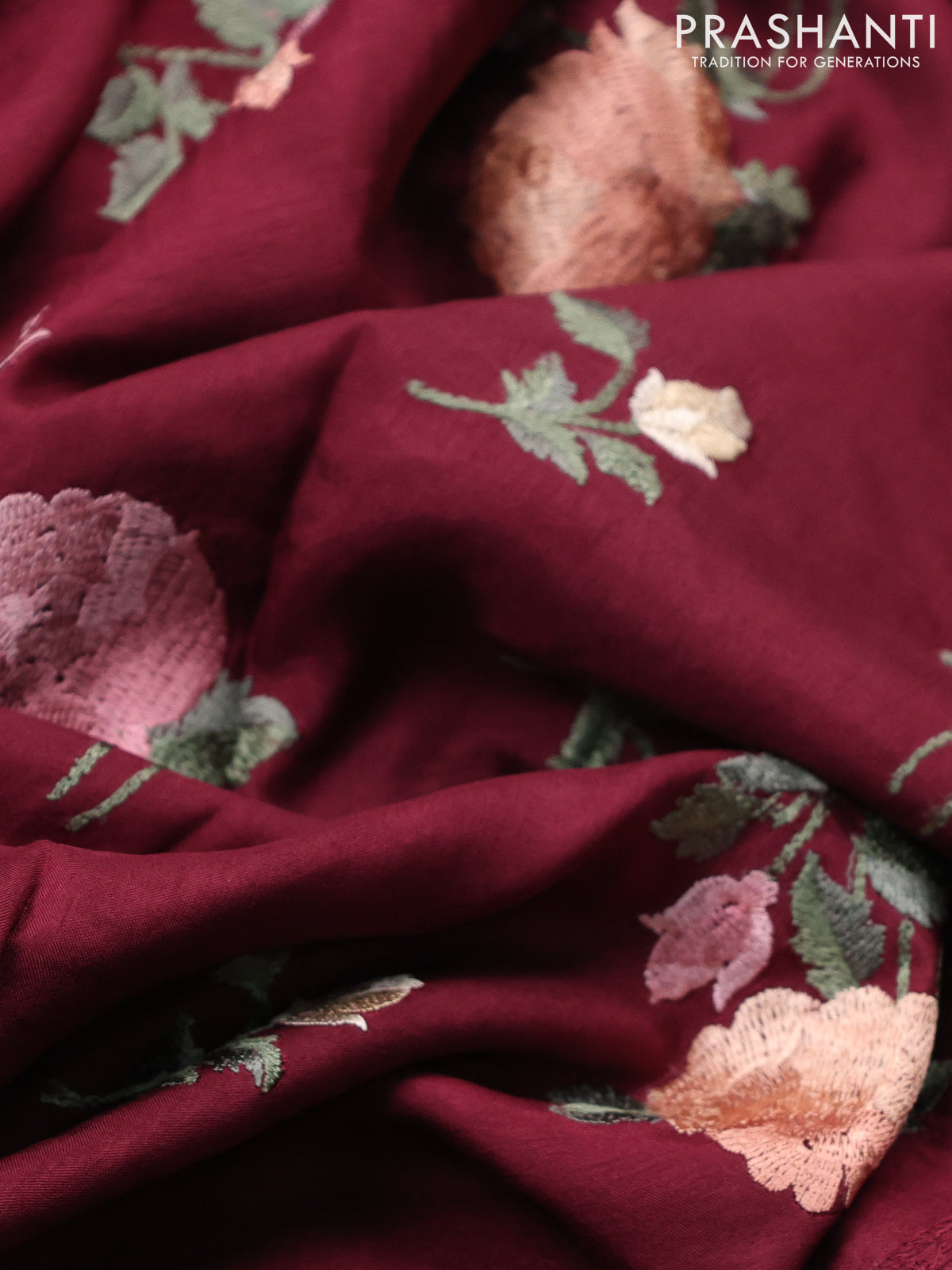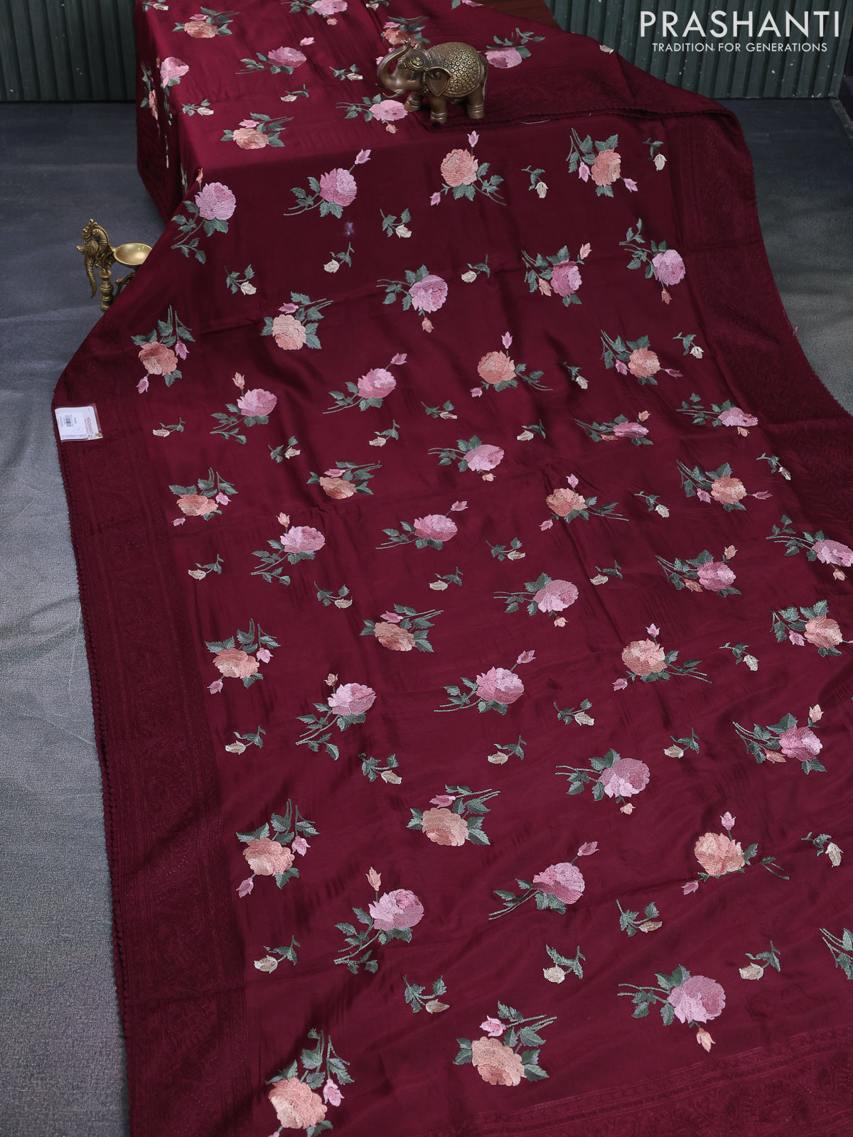 Dola silk saree maroon with allover floral embroidery work and chikankari work border