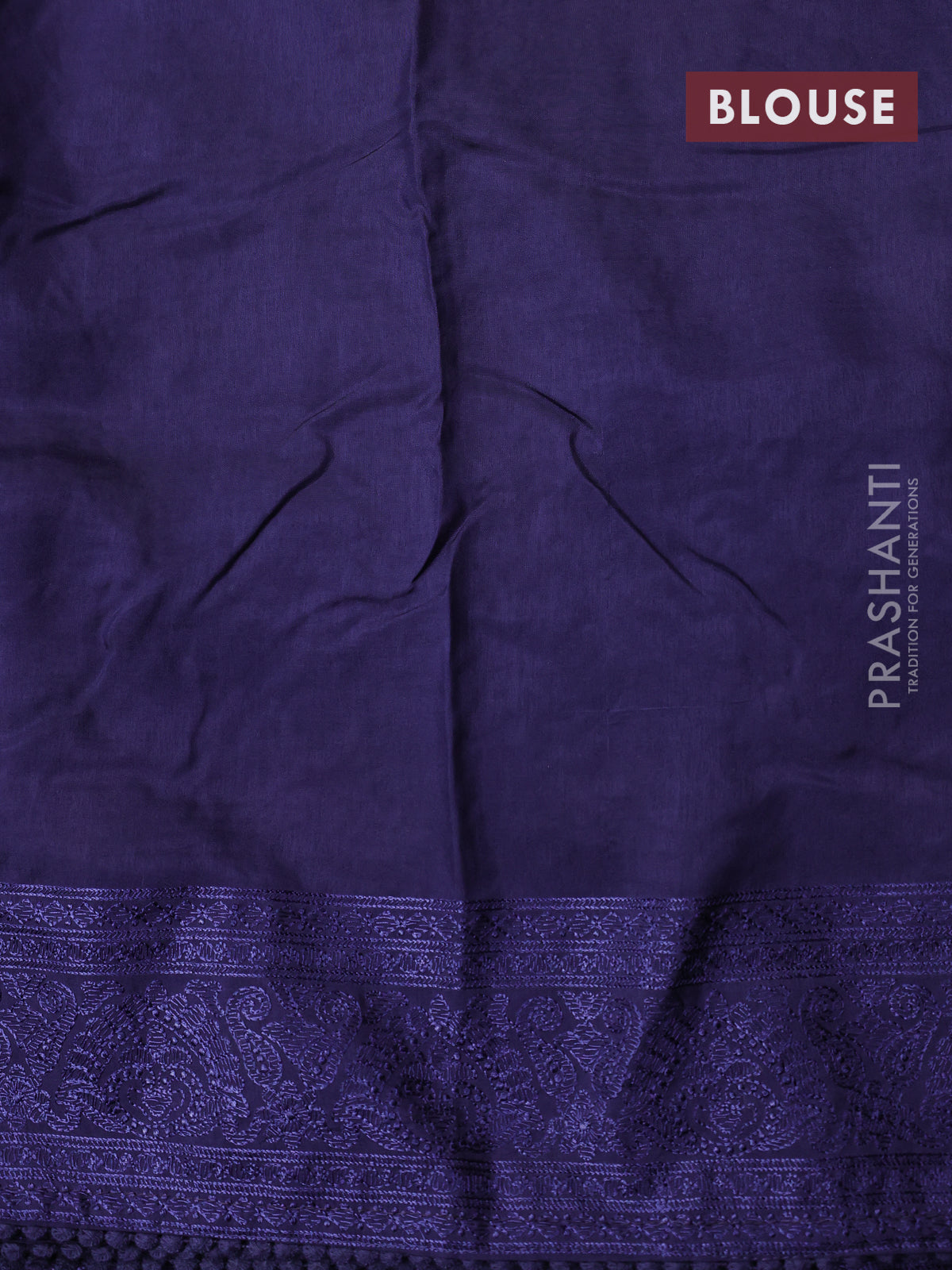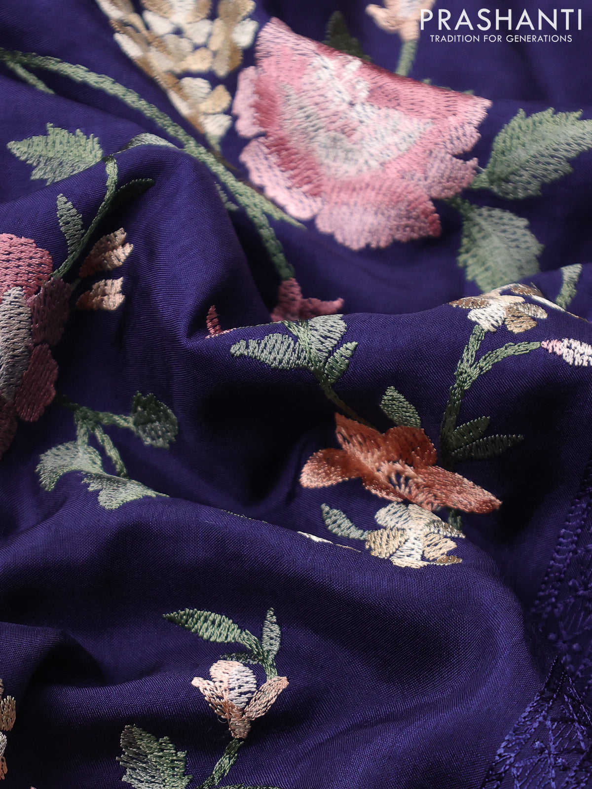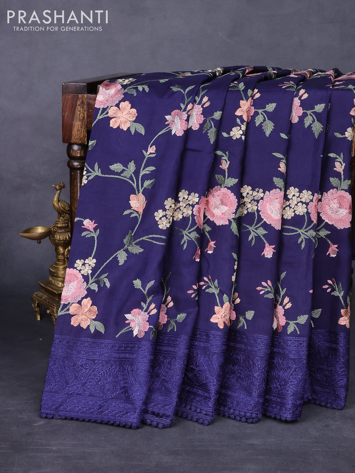 Dola silk saree navy blue with allover floral embroidery work and chikankari work border