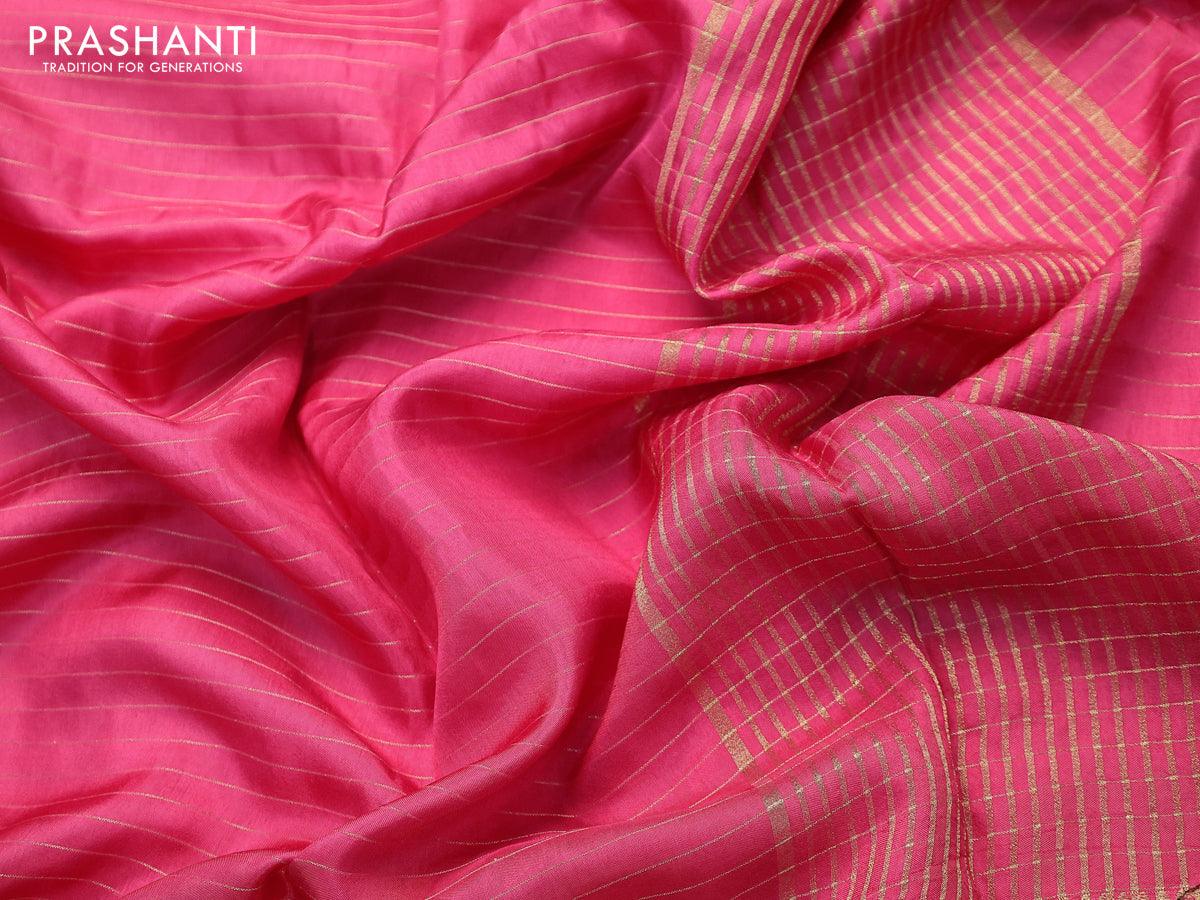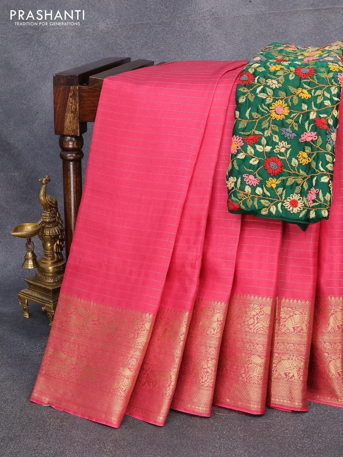 Dola silk saree pink shade and green with allover zari woven stripes pattern and long zari woven border with embroidery work blouse