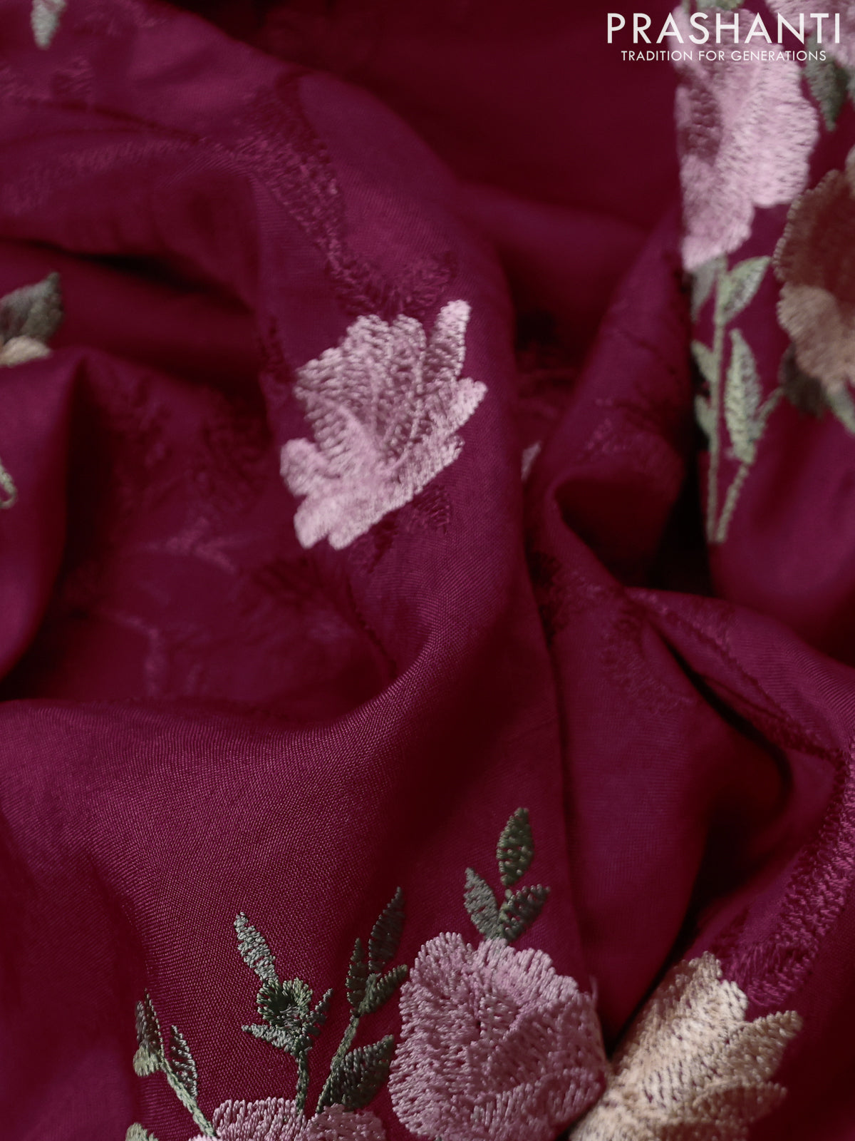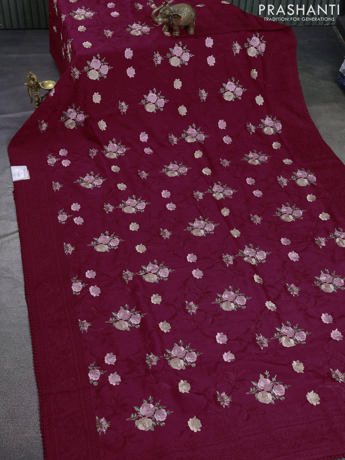 Dola silk saree red with allover floral embroidery work and chikankari work border