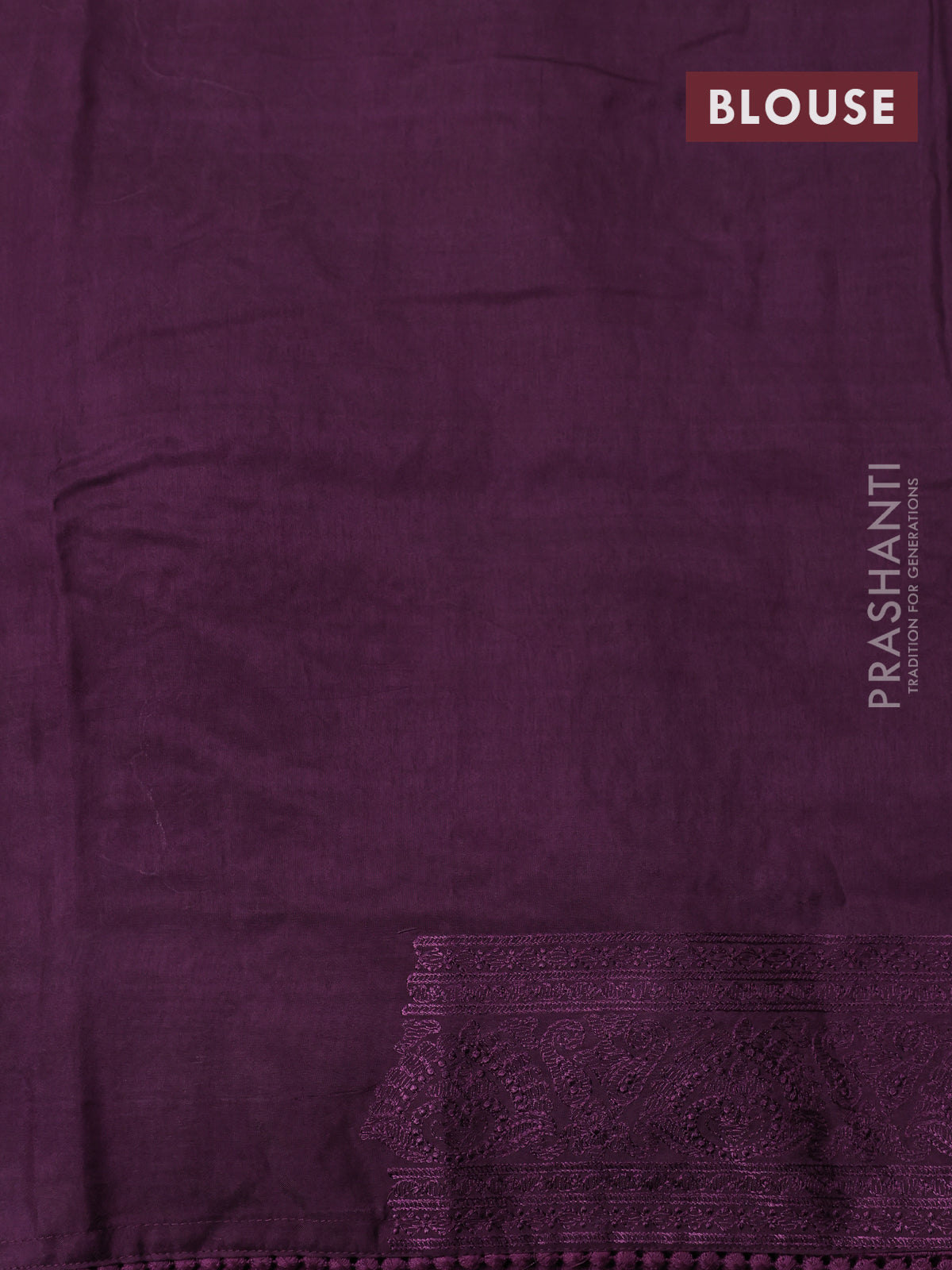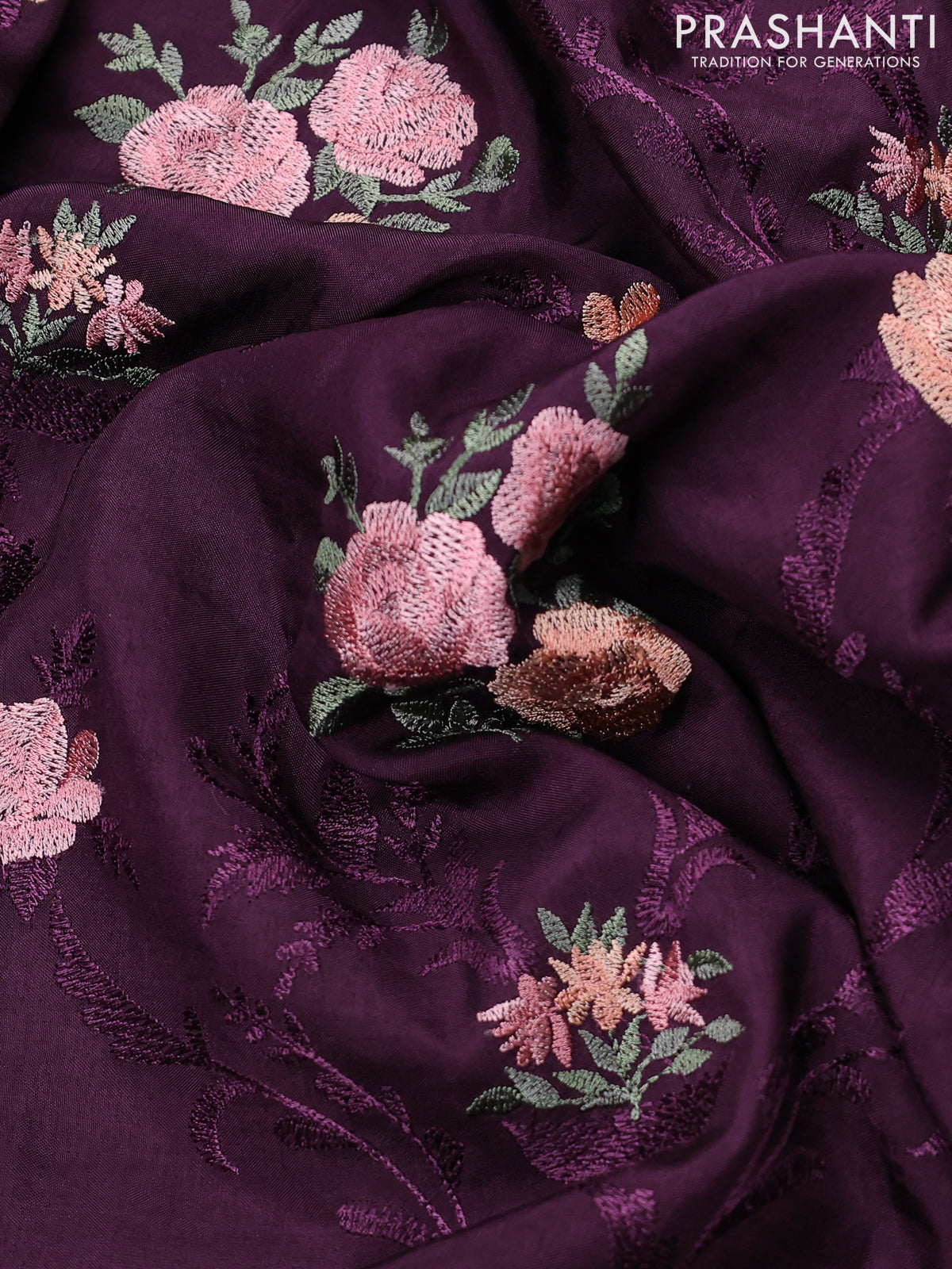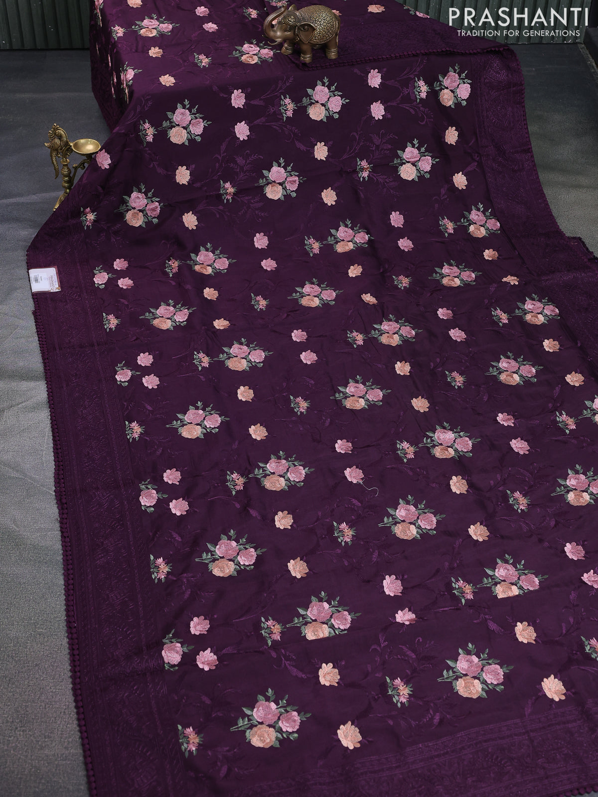 Dola silk saree wine shade with allover floral embroidery work and chikankari work border