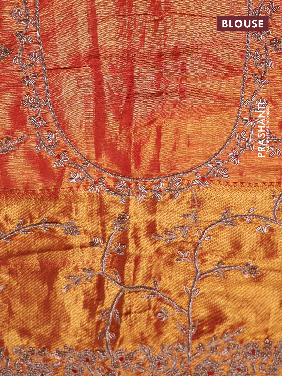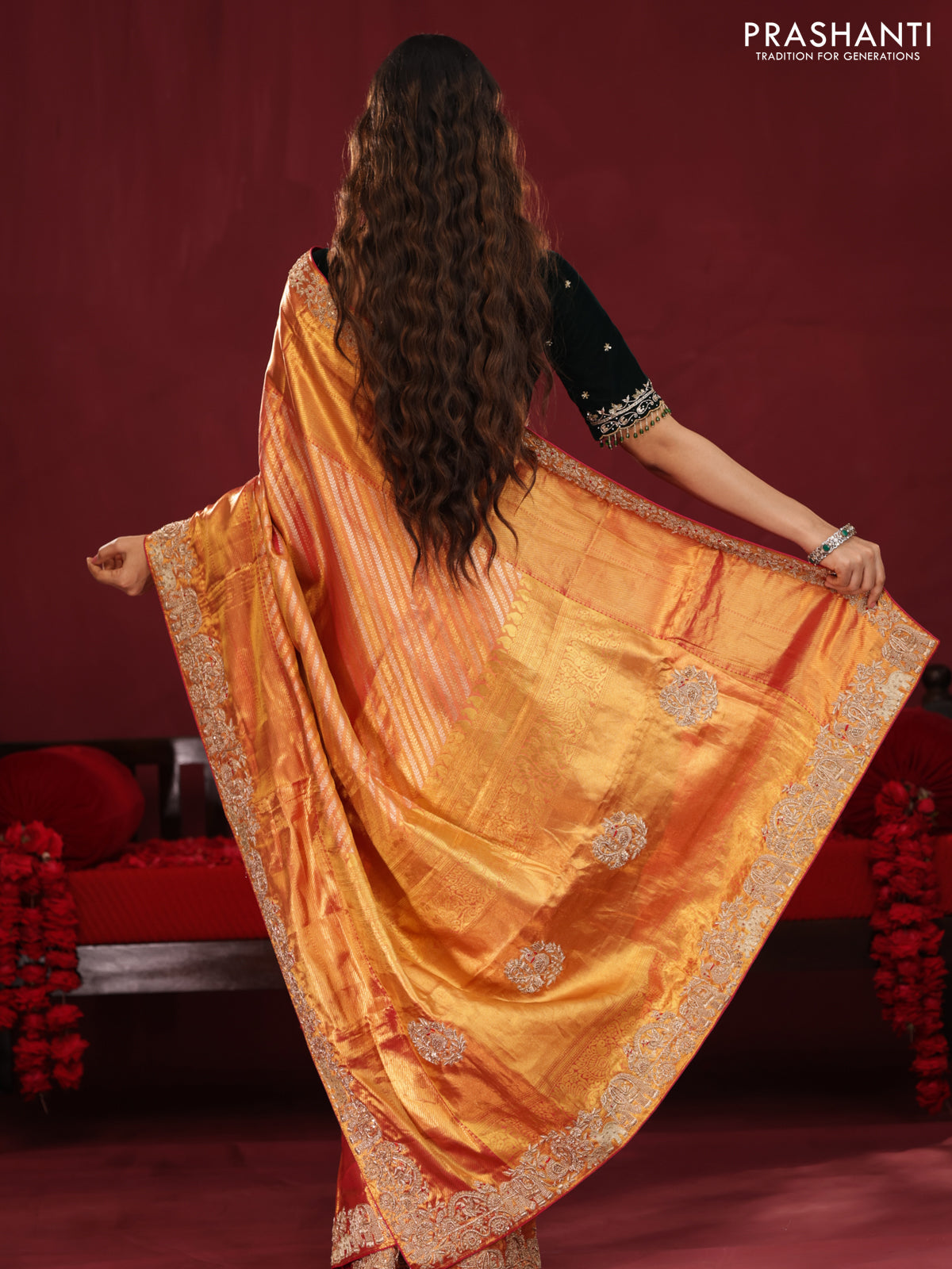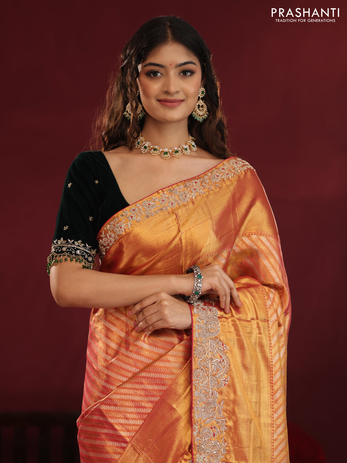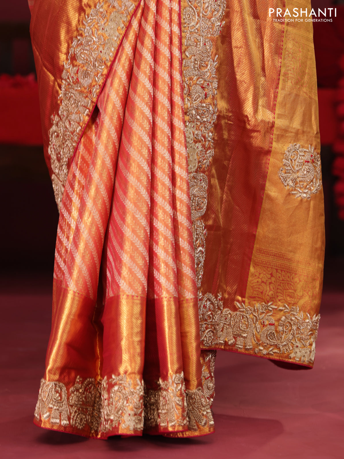 Dual shade of pink pure kanchipuram silk saree with allover zari stripes & border embroidery