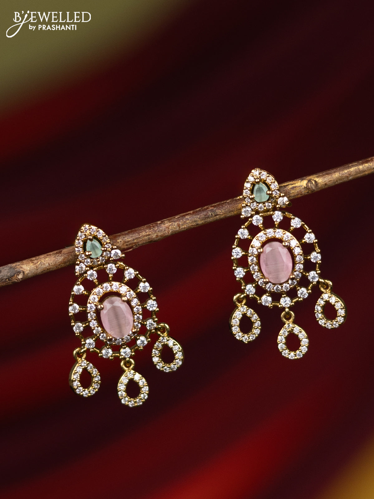 Earring with baby pink & mint green and cz stones in victorian finish