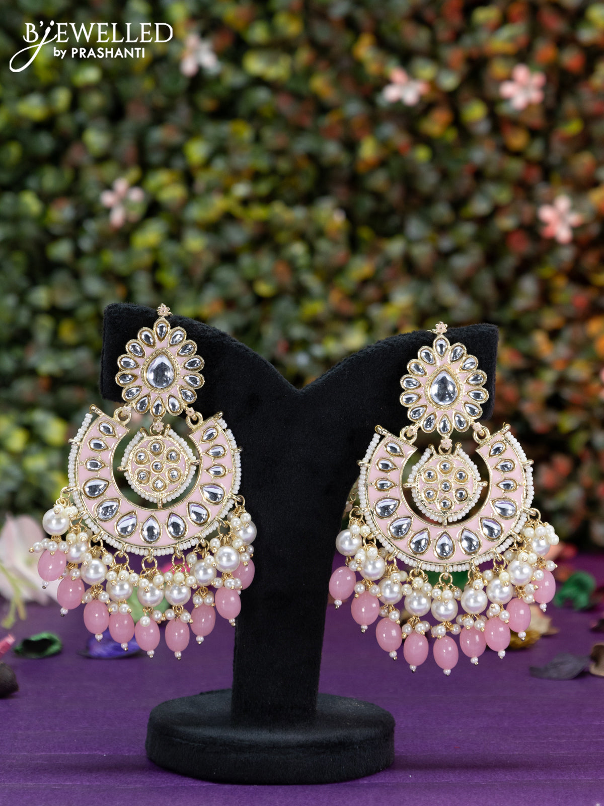Fashion dangler chanbali baby pink minakari earrings with beads and pearl hangings