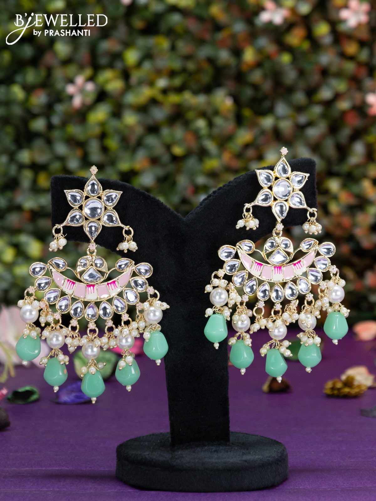 Fashion dangler chanbali geal green minakari earrings with beads and pearl hangings