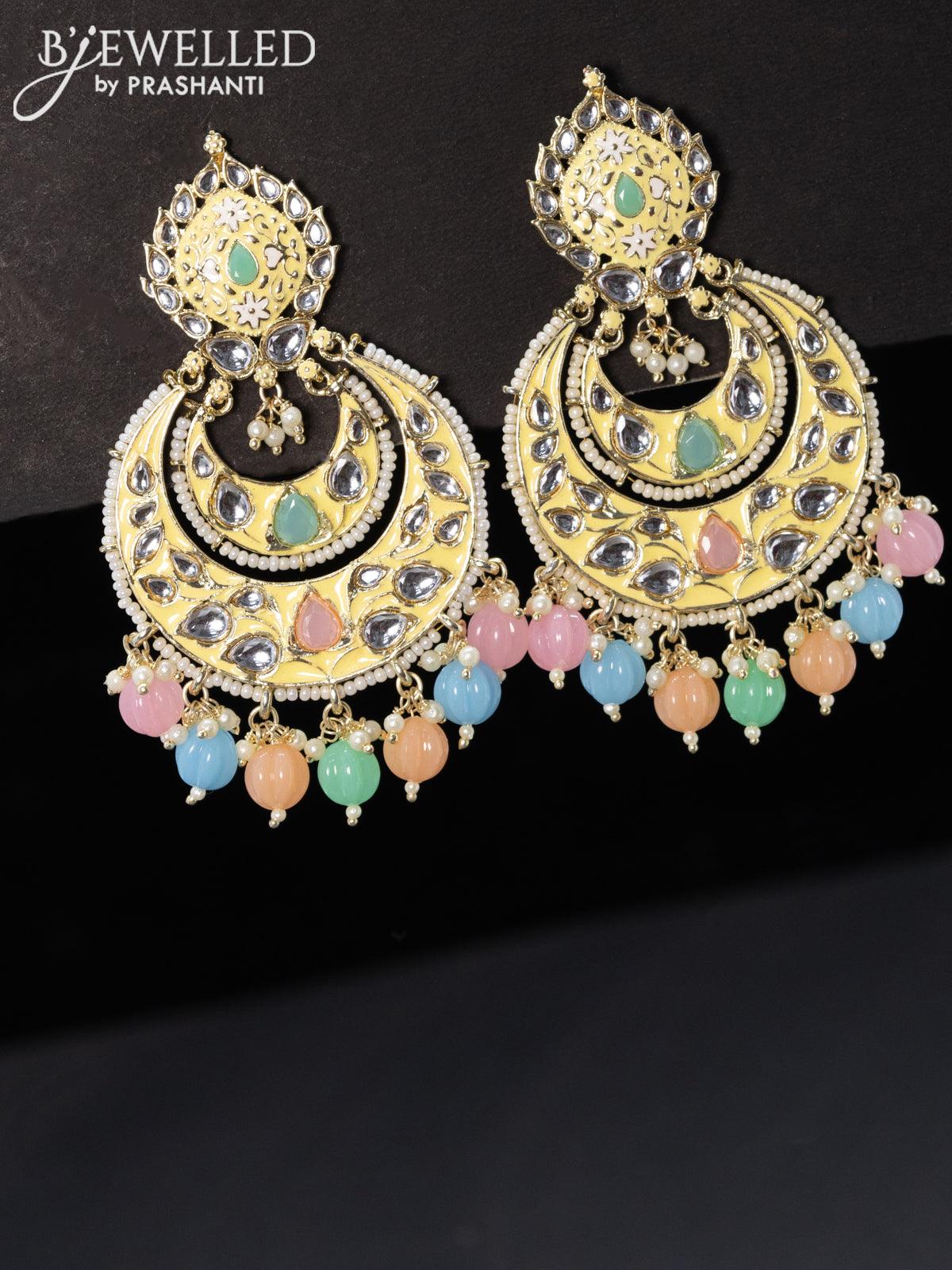 Fashion dangler chandbali cream minakari earrings with multi colour beads hanging