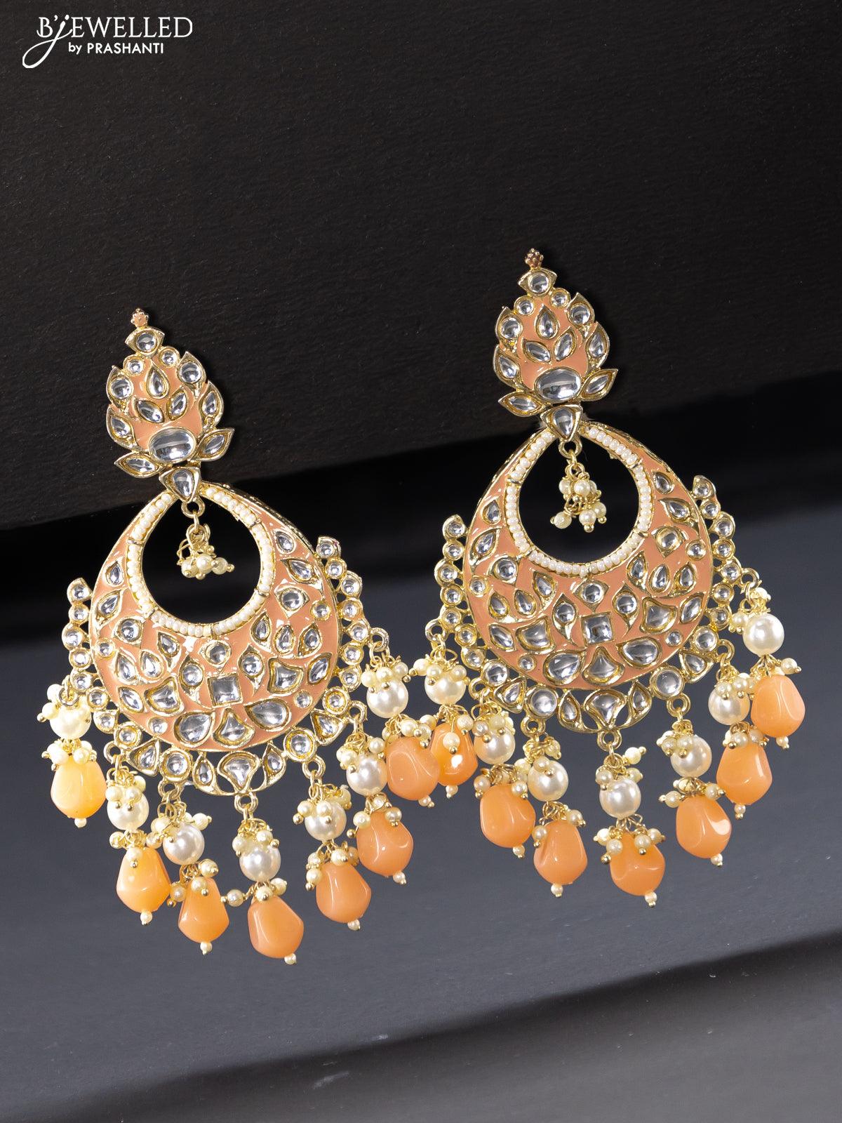 Fashion dangler chandbali design peach earrings with pearl and beads hangings