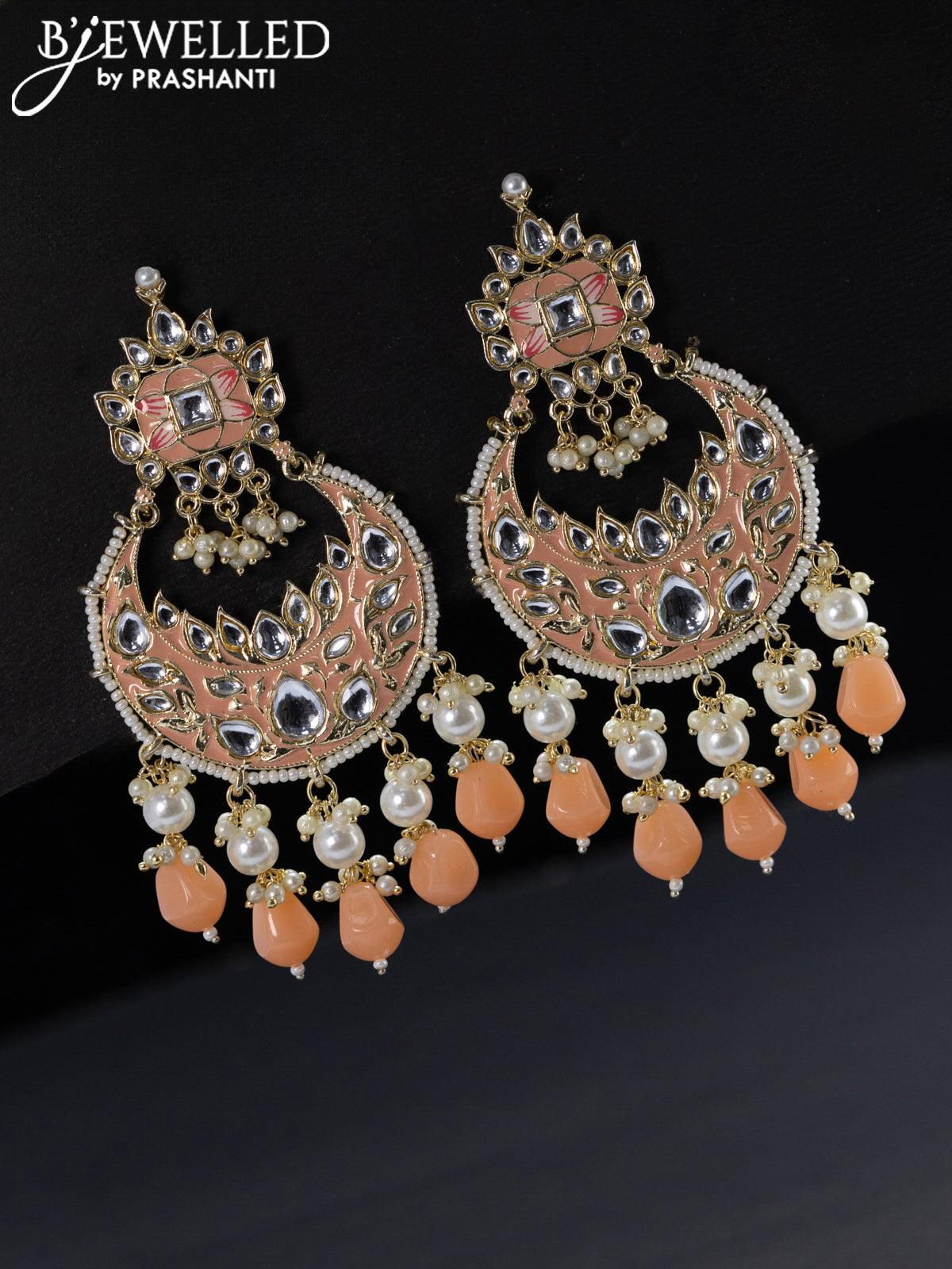 Fashion dangler chandbali peach minakari earrings with beads hangings