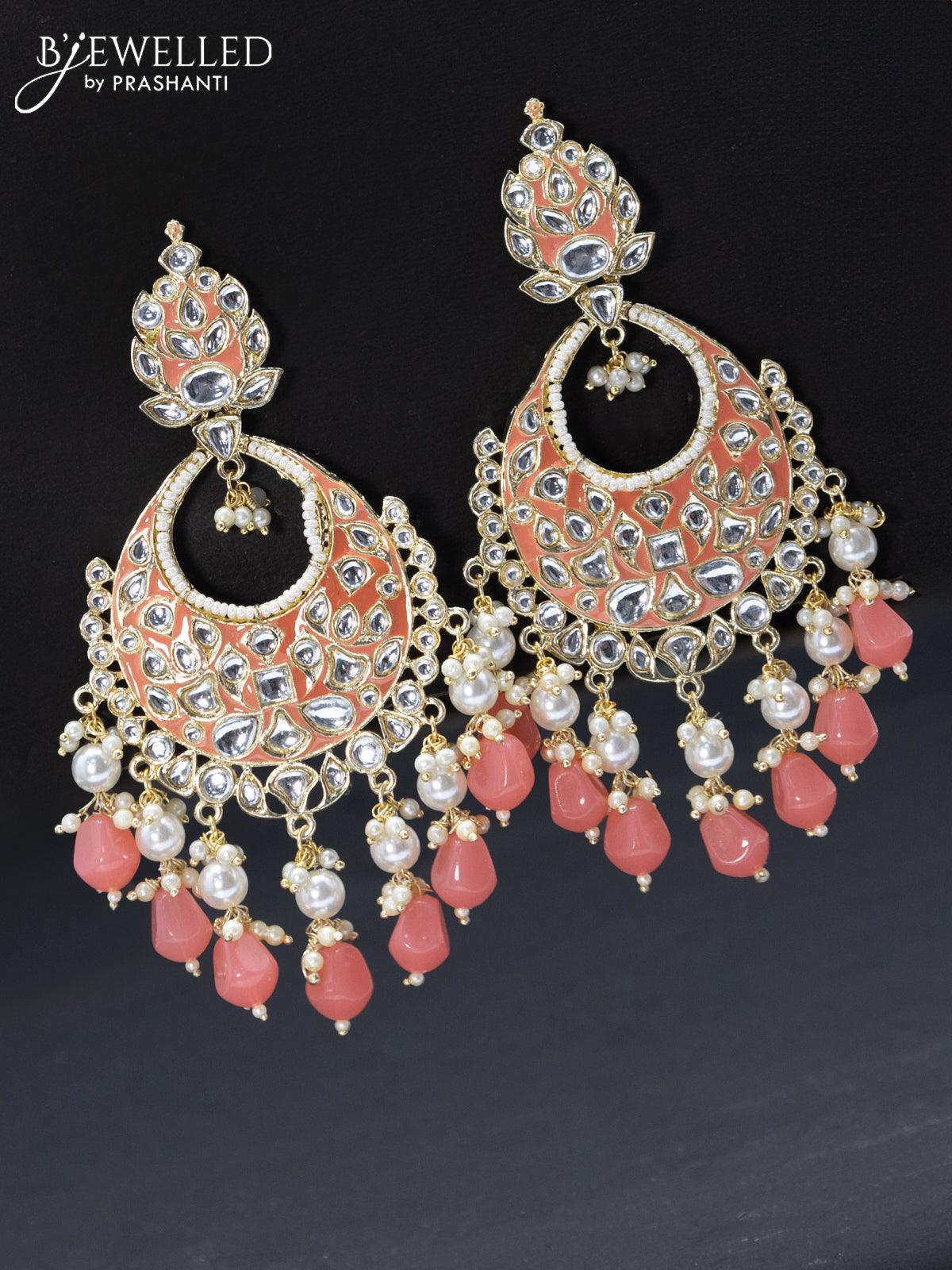 Fashion dangler chandbali peach pink minakari earrings with pearl hangings
