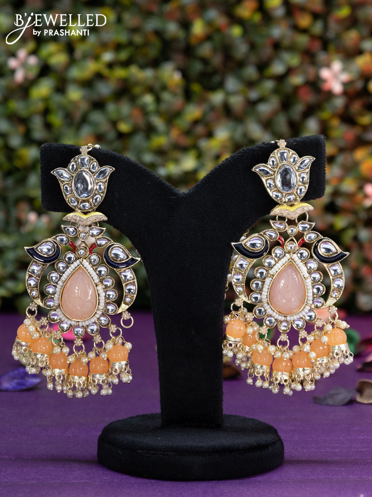 Fashion dangler peach minakari earrings with kundan stones and beads hangings