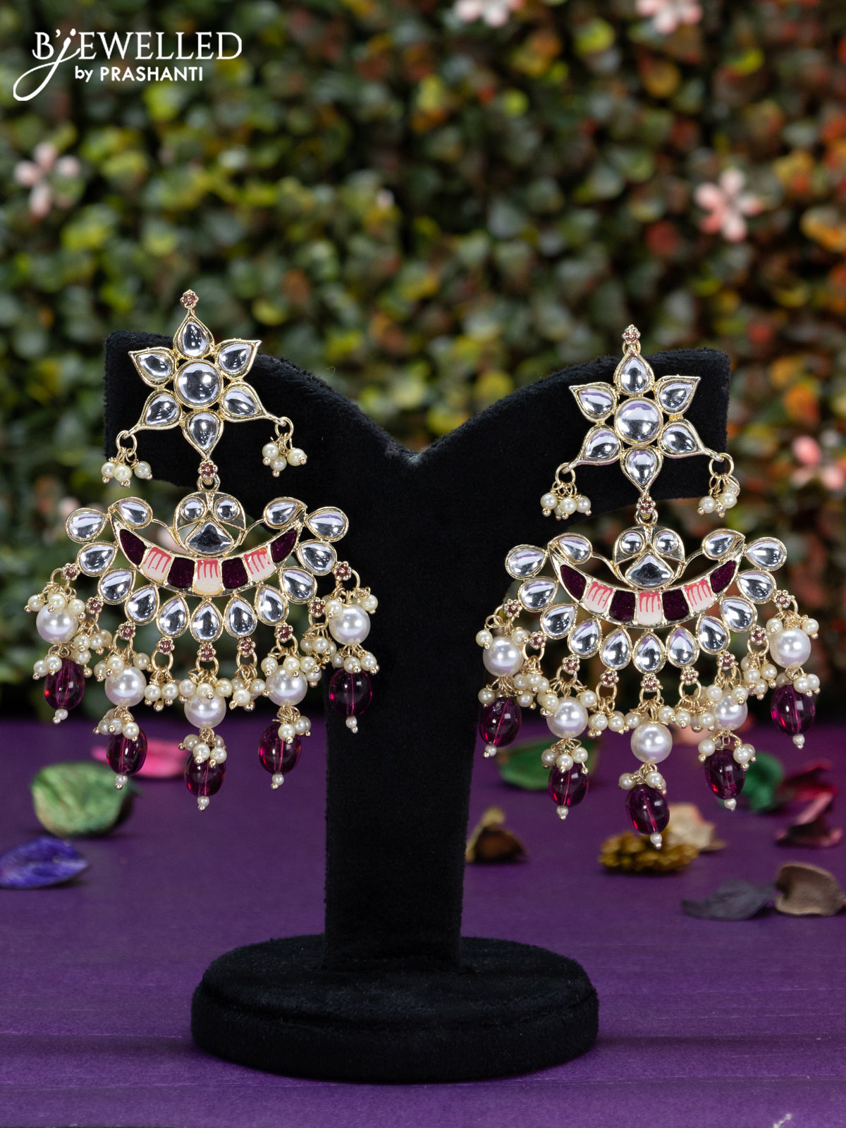 Fashion dangler wine shade minakari earrings with beads and pearl hangings