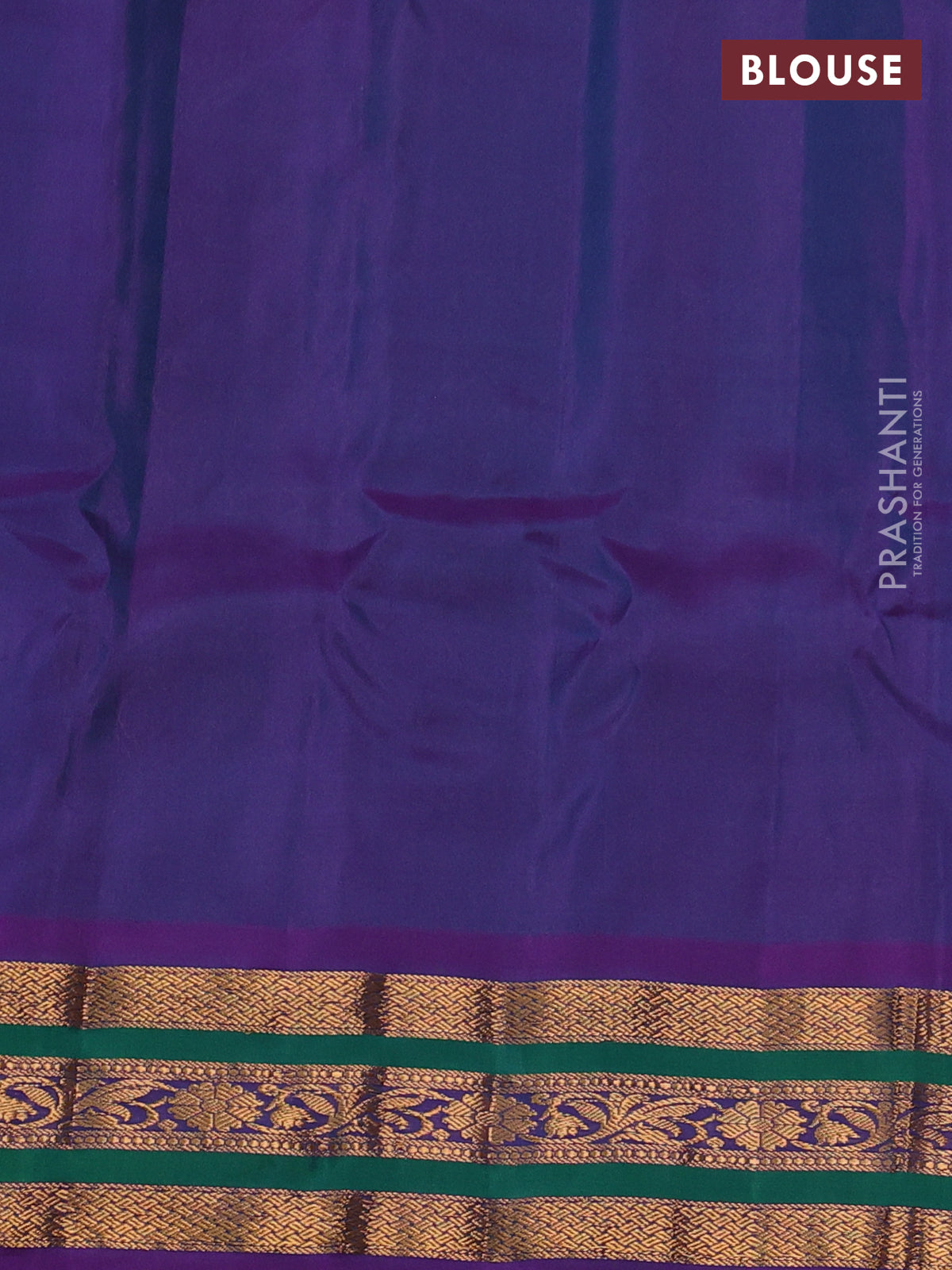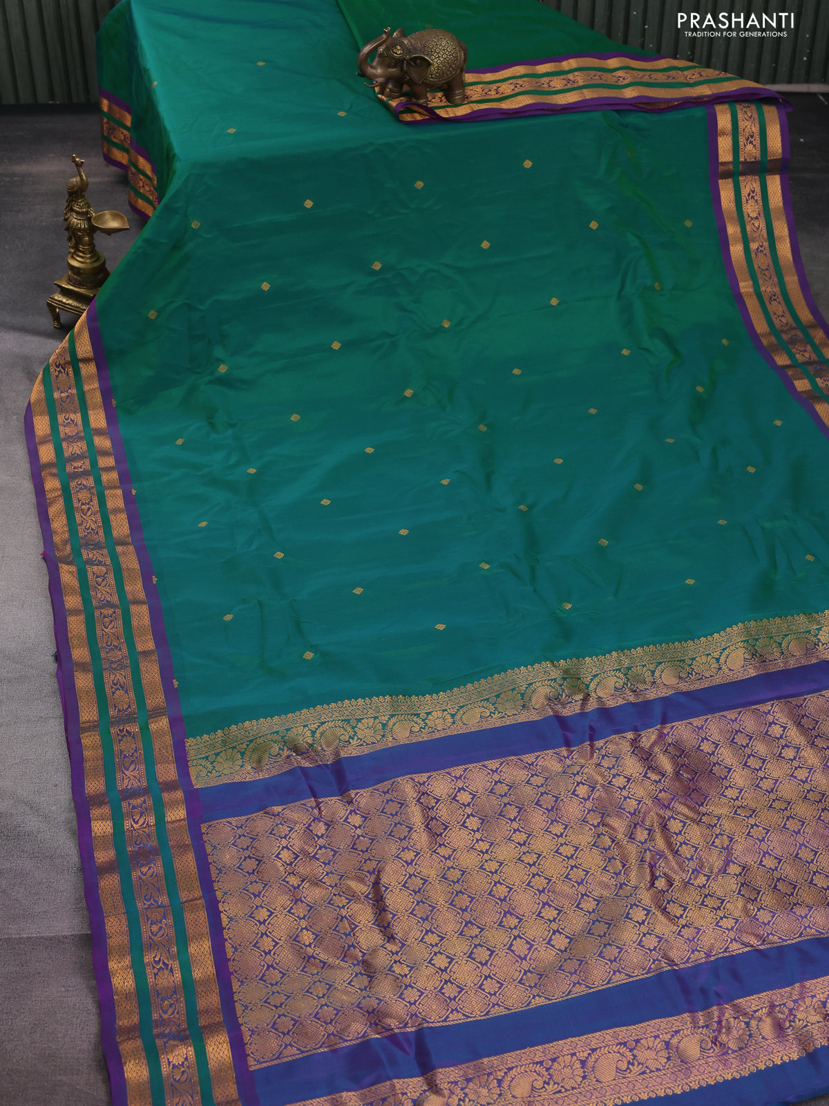 Gadwal silk cotton saree dual shade of green and purple with zari woven paisley buttas and zari woven border