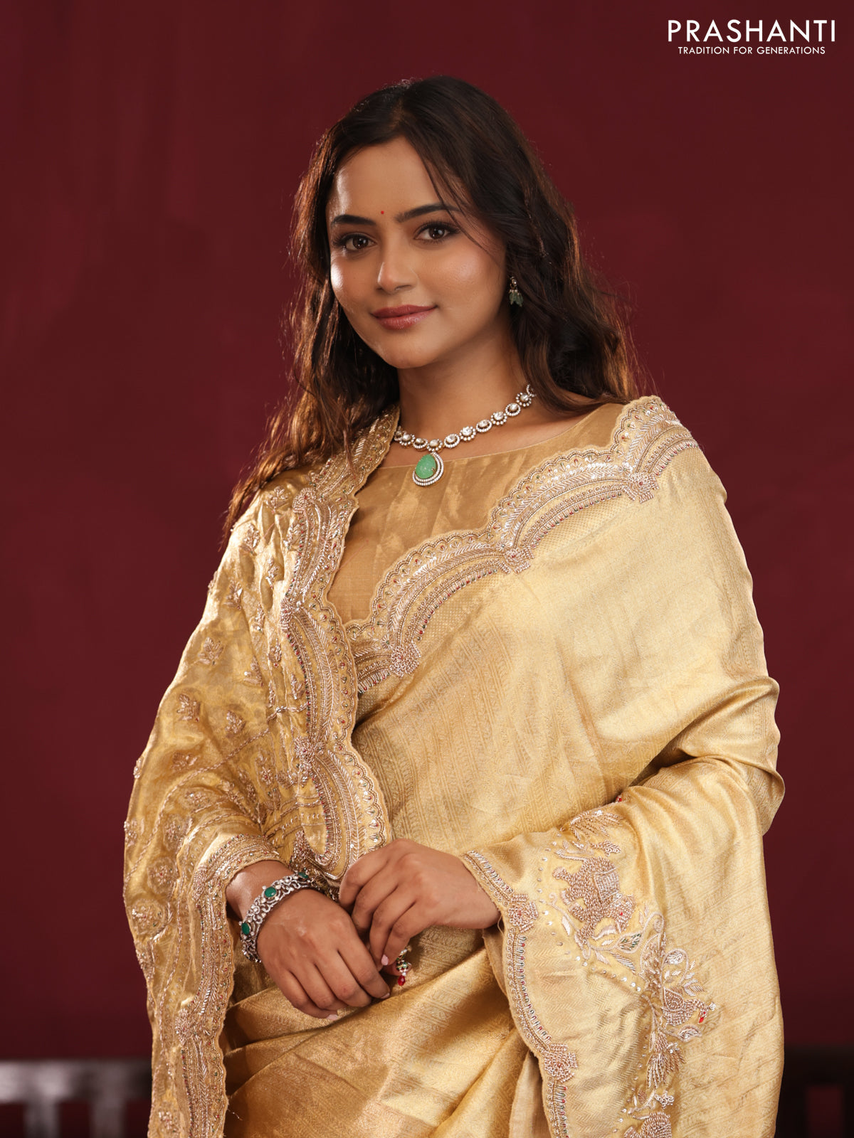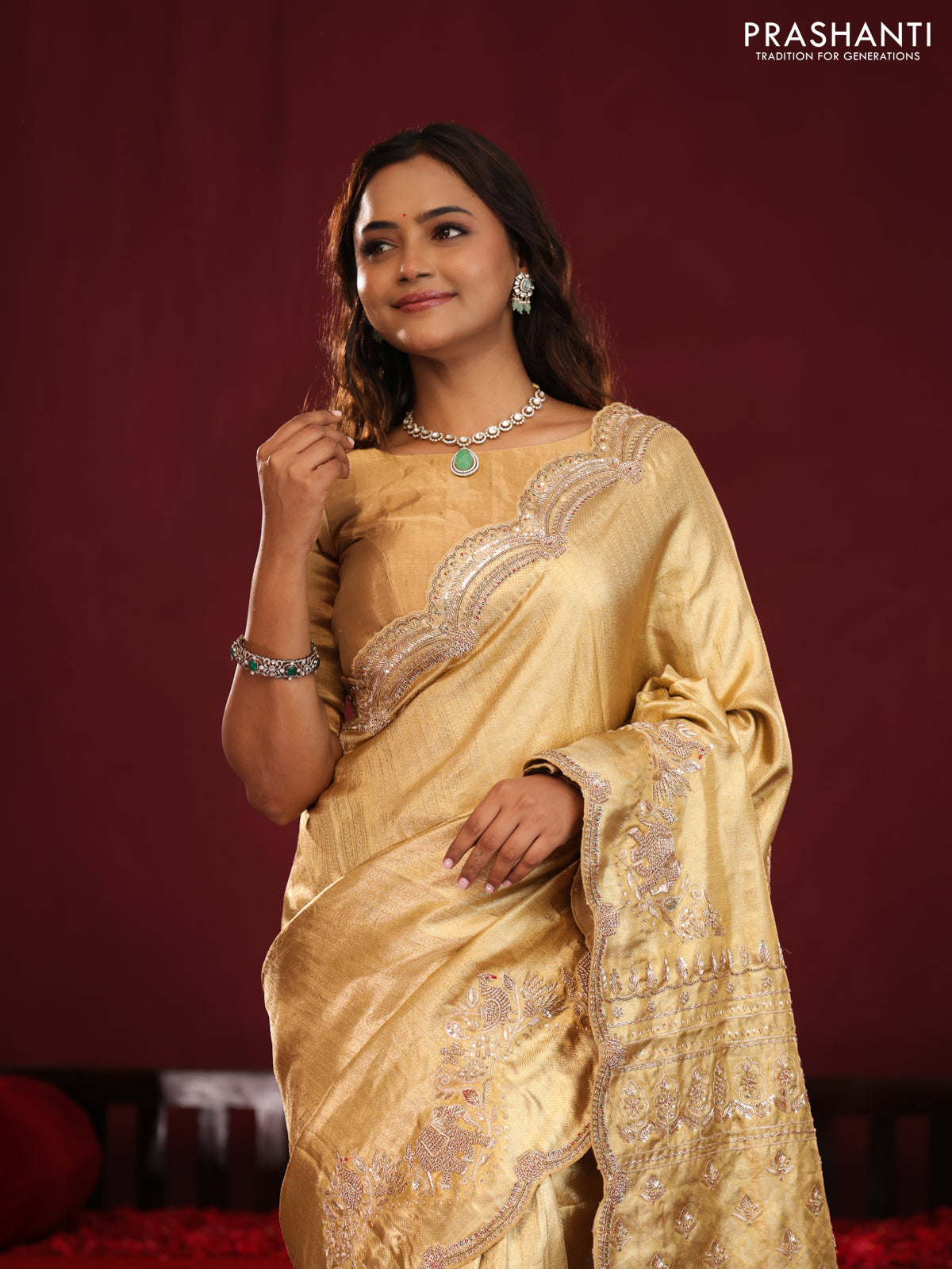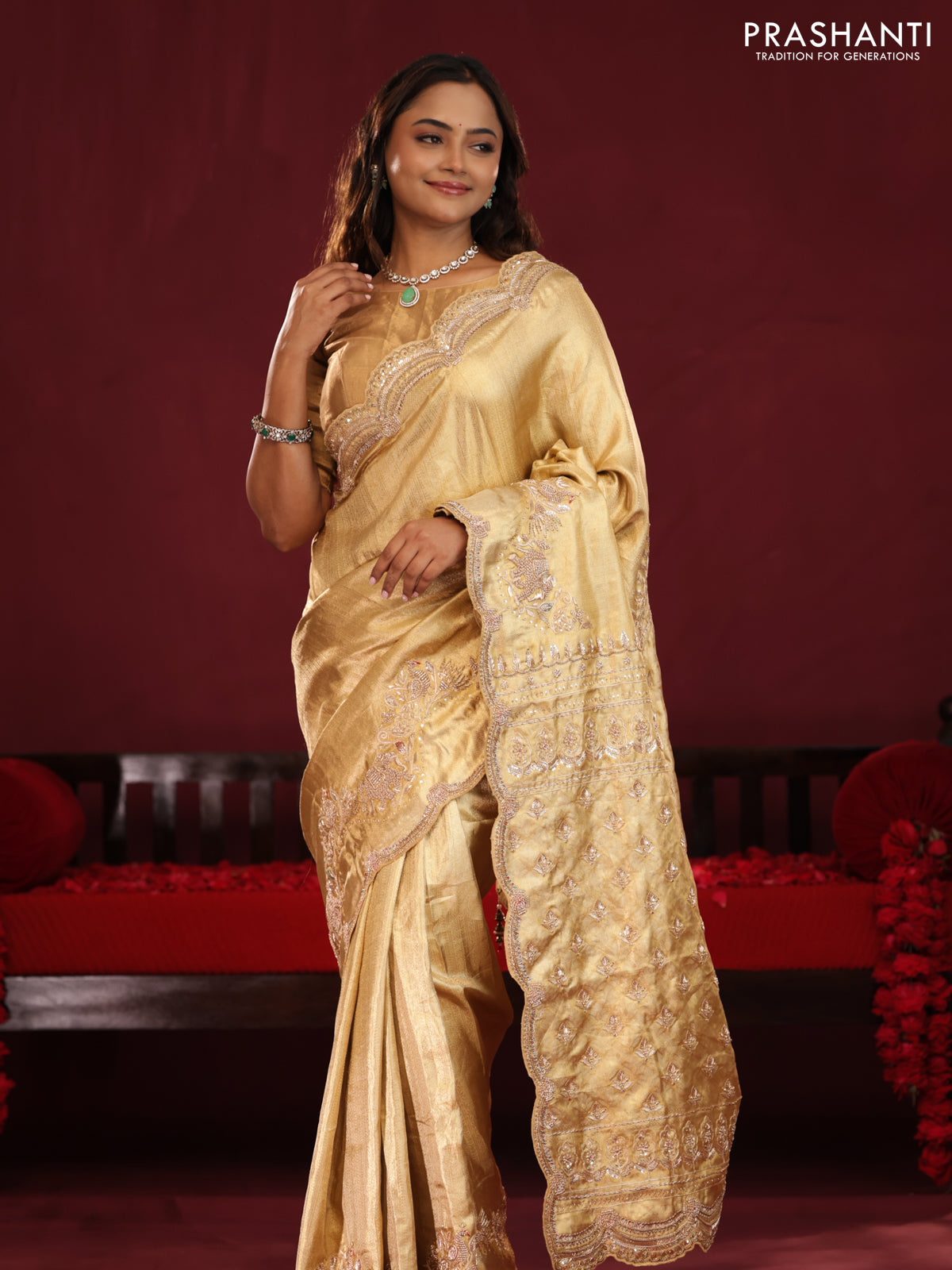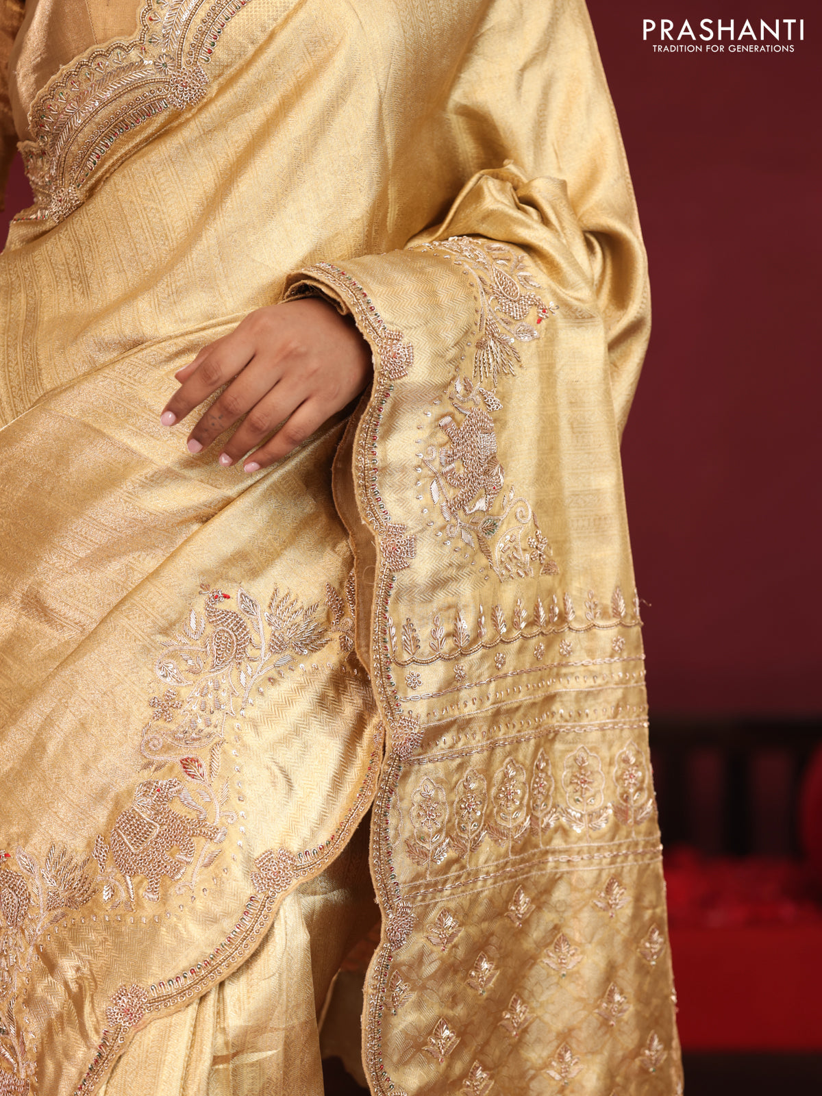 Gold pure kanchipuram tissue silk saree with embroidery border & pallu