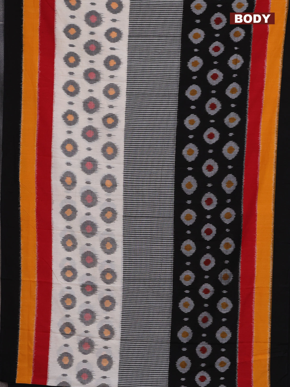 Ikat cotton saree black and multi colour with allover ikat weaves and simple border