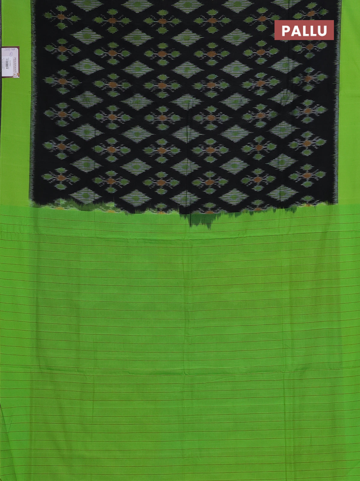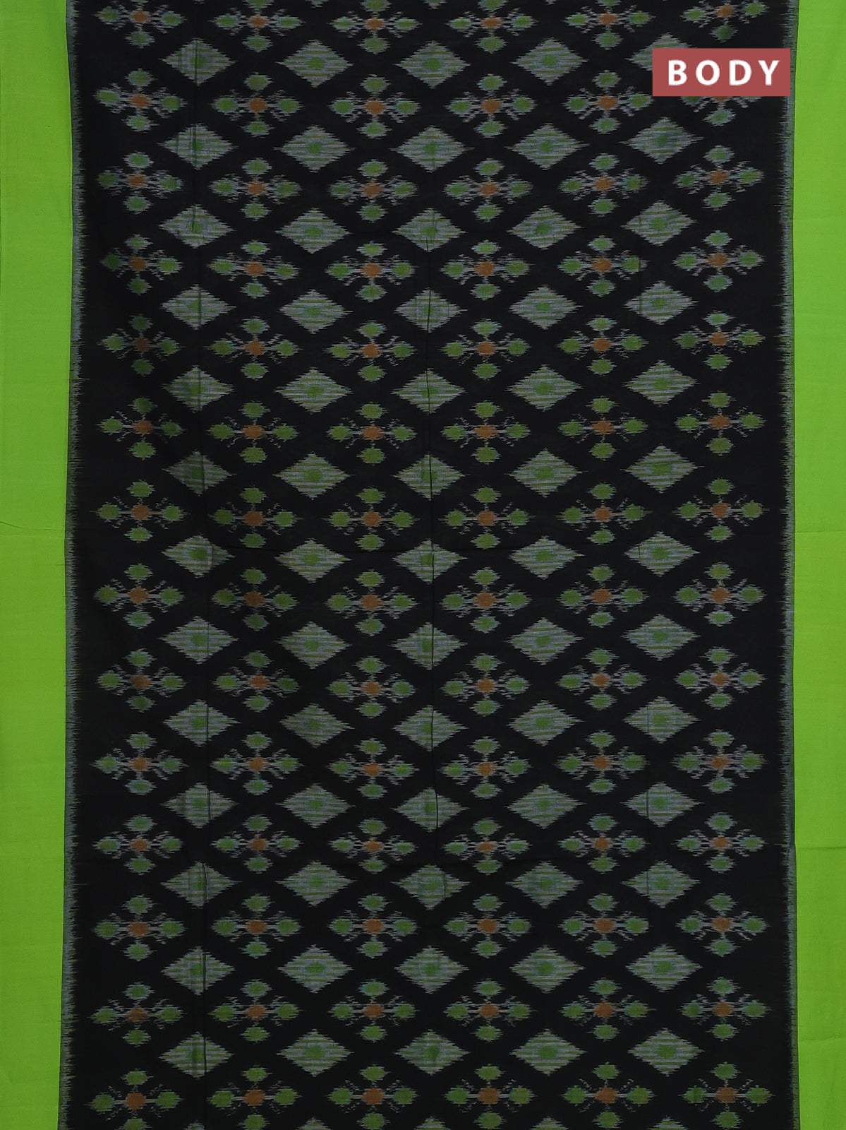 Ikat cotton saree black and parrot green with allover ikat butta weaves and simple border