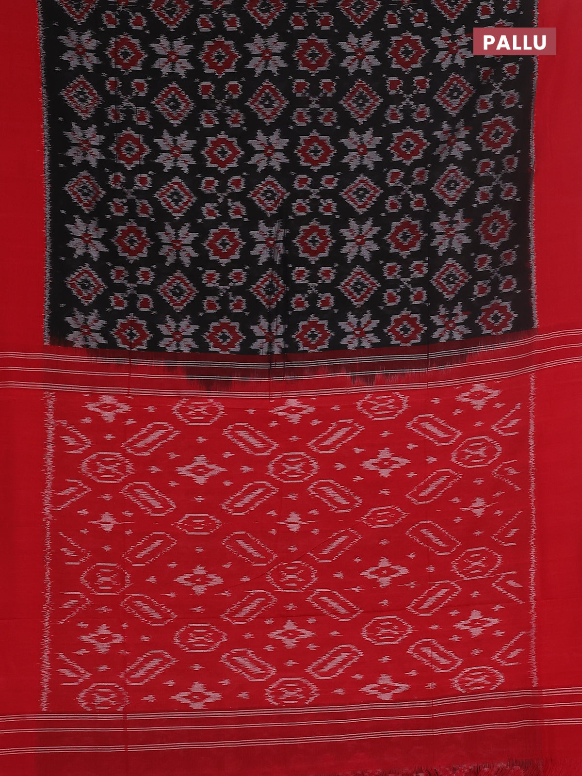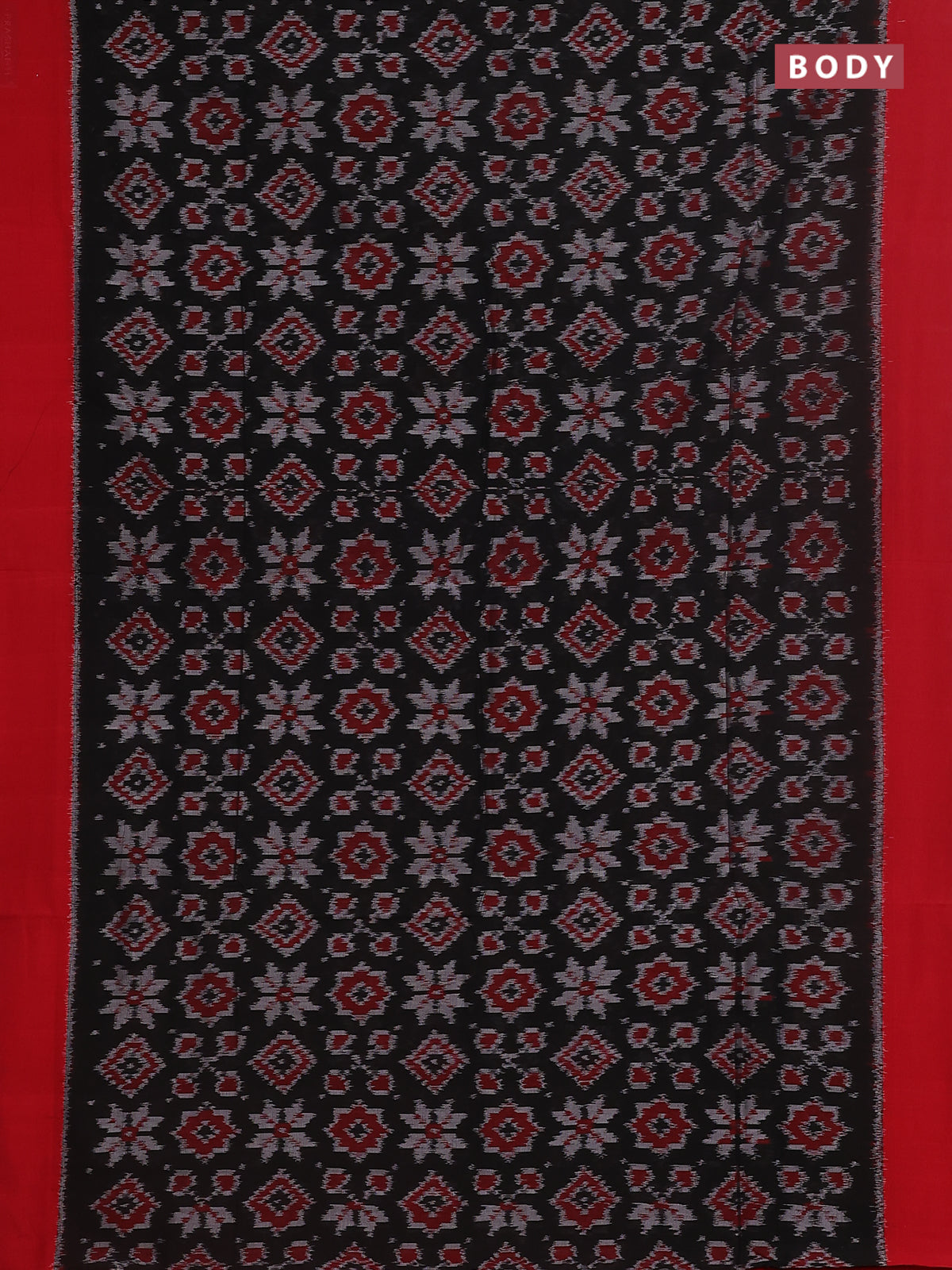 Ikat cotton saree black and red with allover ikat weaves and simple border
