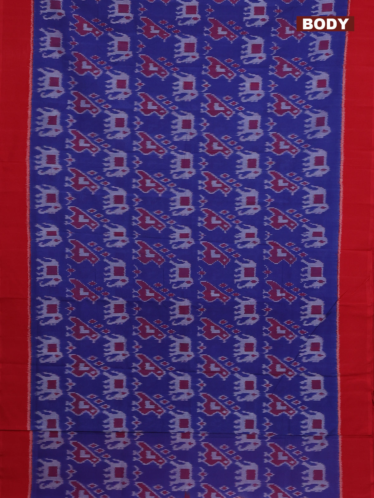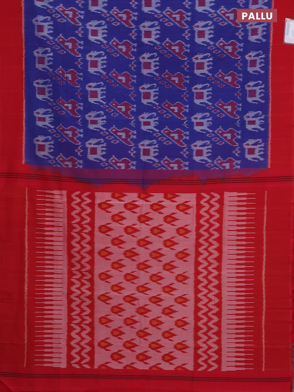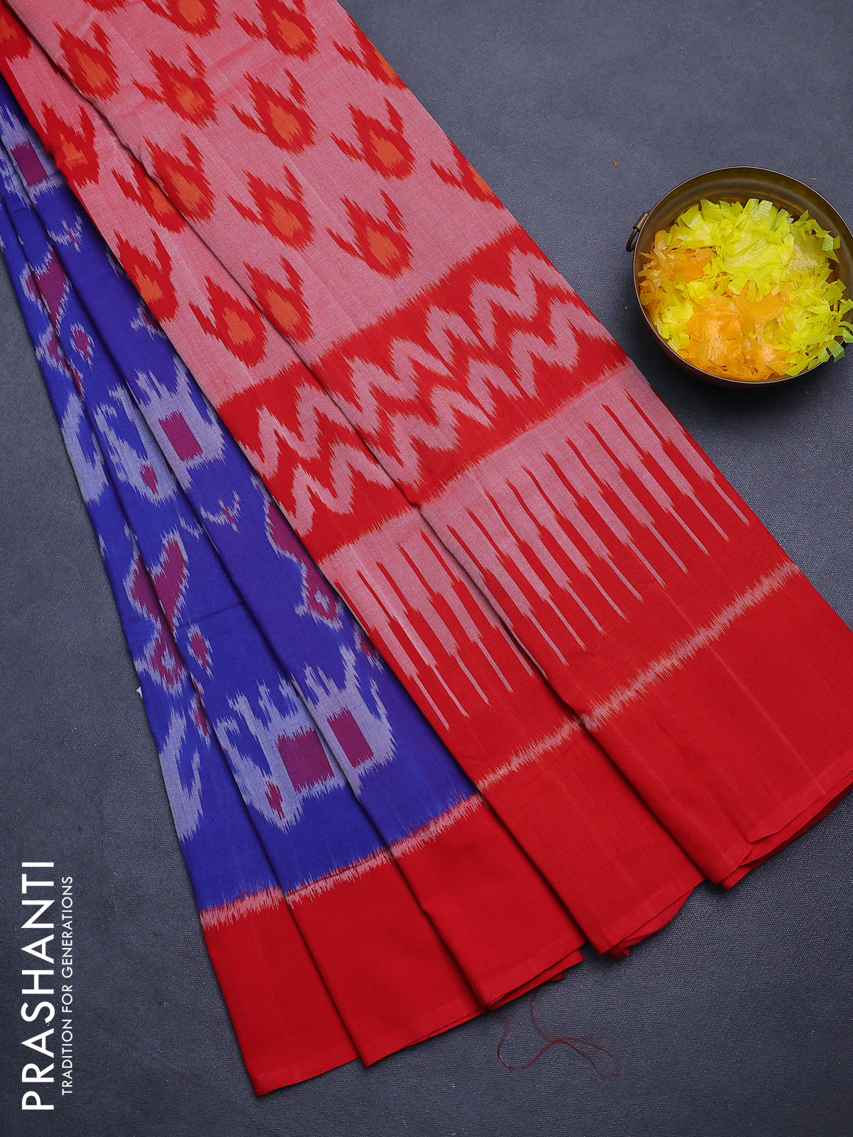 Ikat cotton saree blue and red with allover ikat weaves and simple border