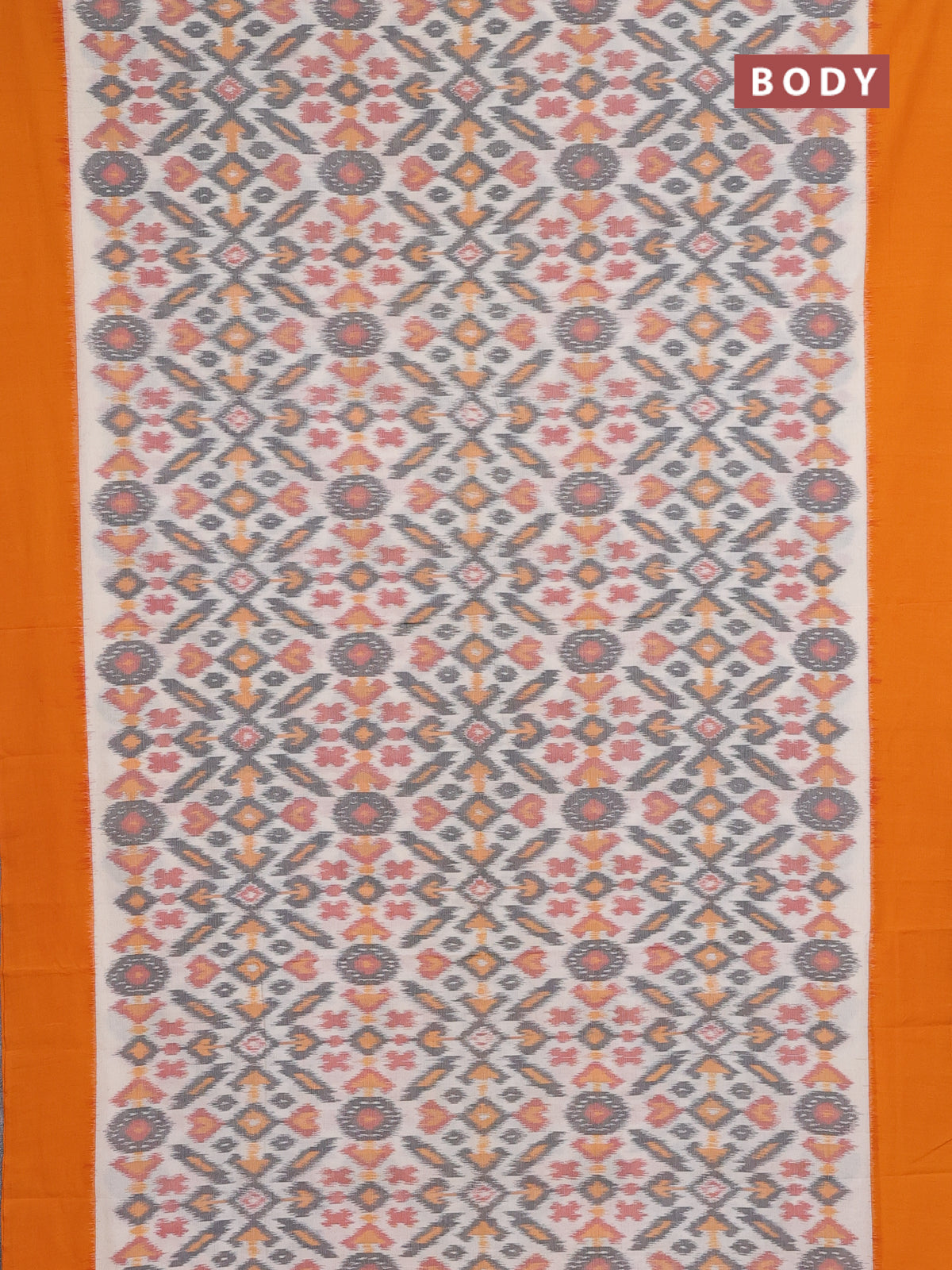 Ikat cotton saree cream and dark mustard with allover ikat weaves and simple border