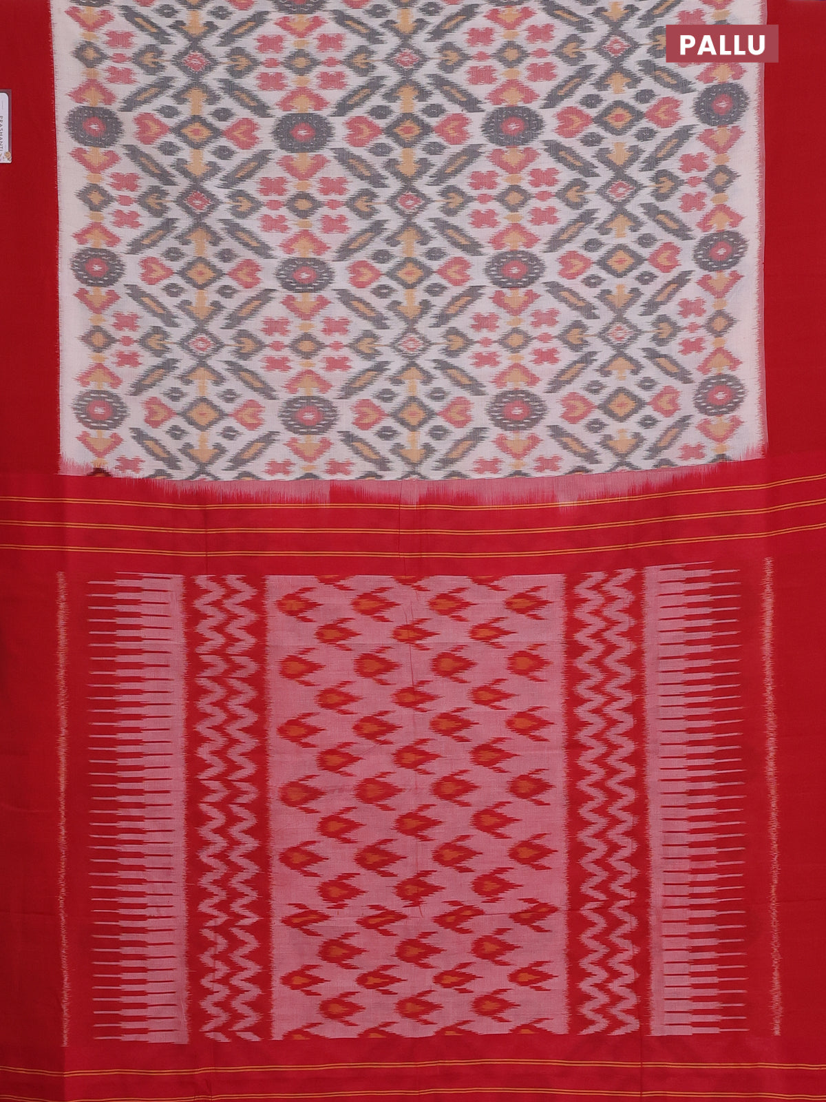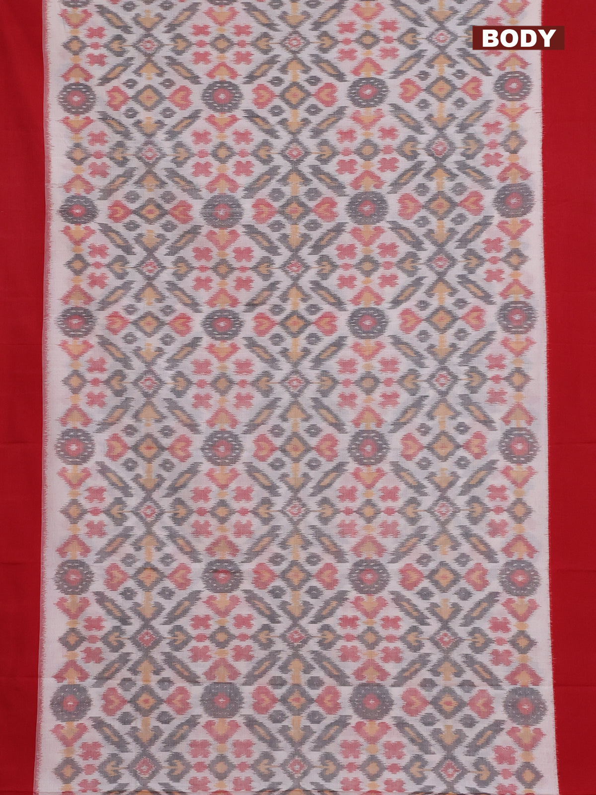 Ikat cotton saree cream and red with allover ikat weaves and simple border