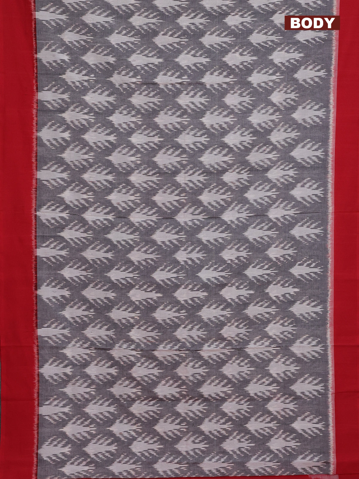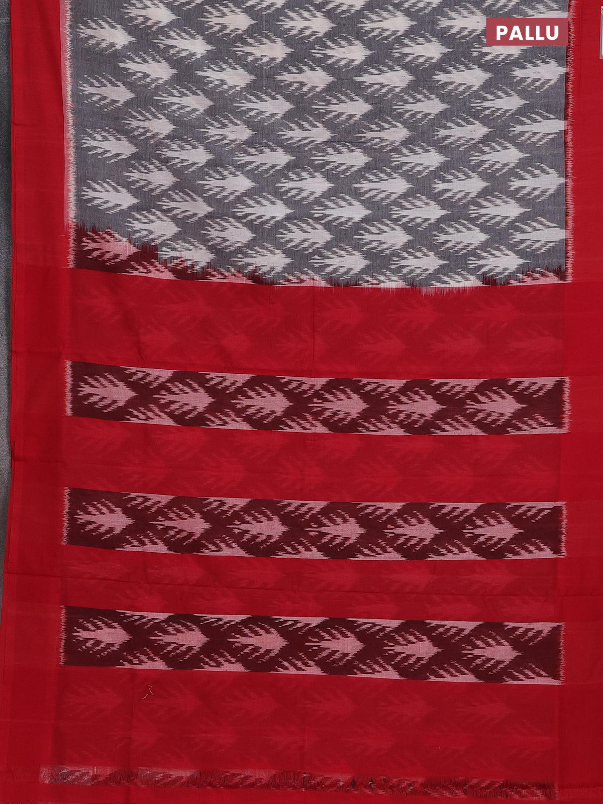 Ikat cotton saree grey and red with allover ikat weaves and simple border