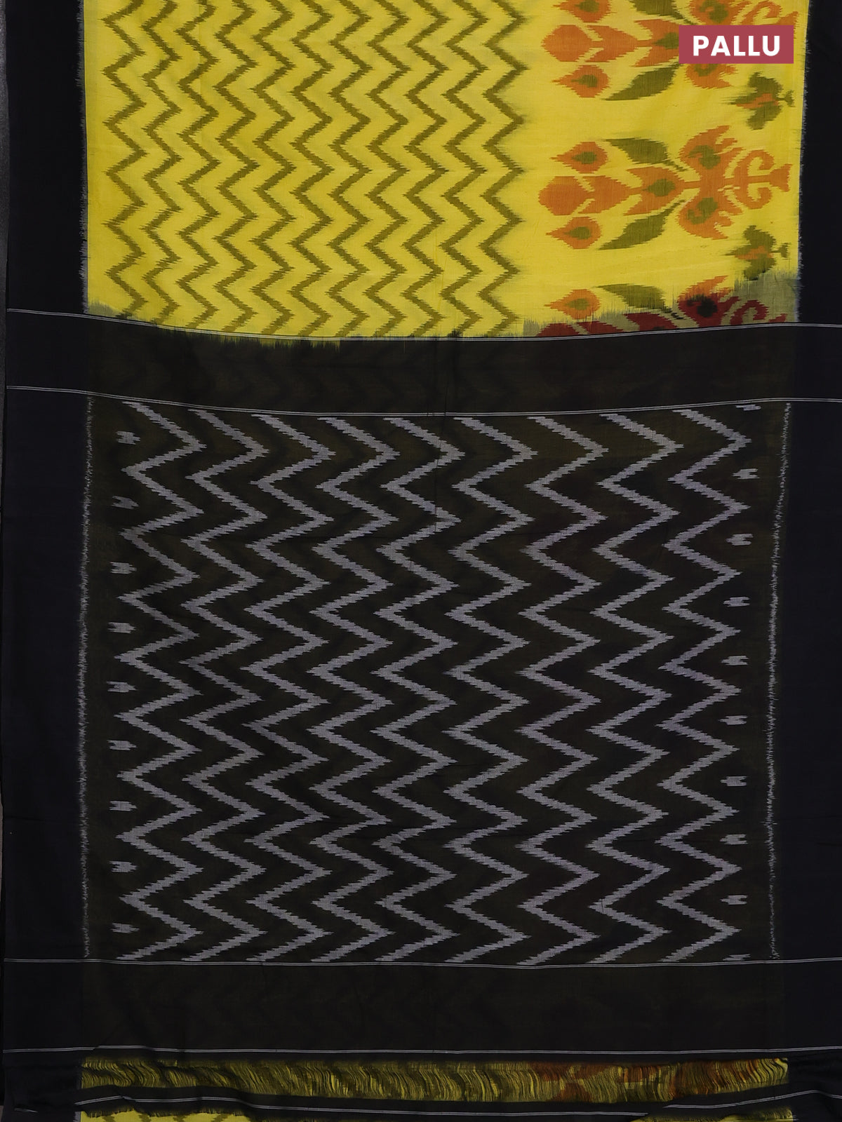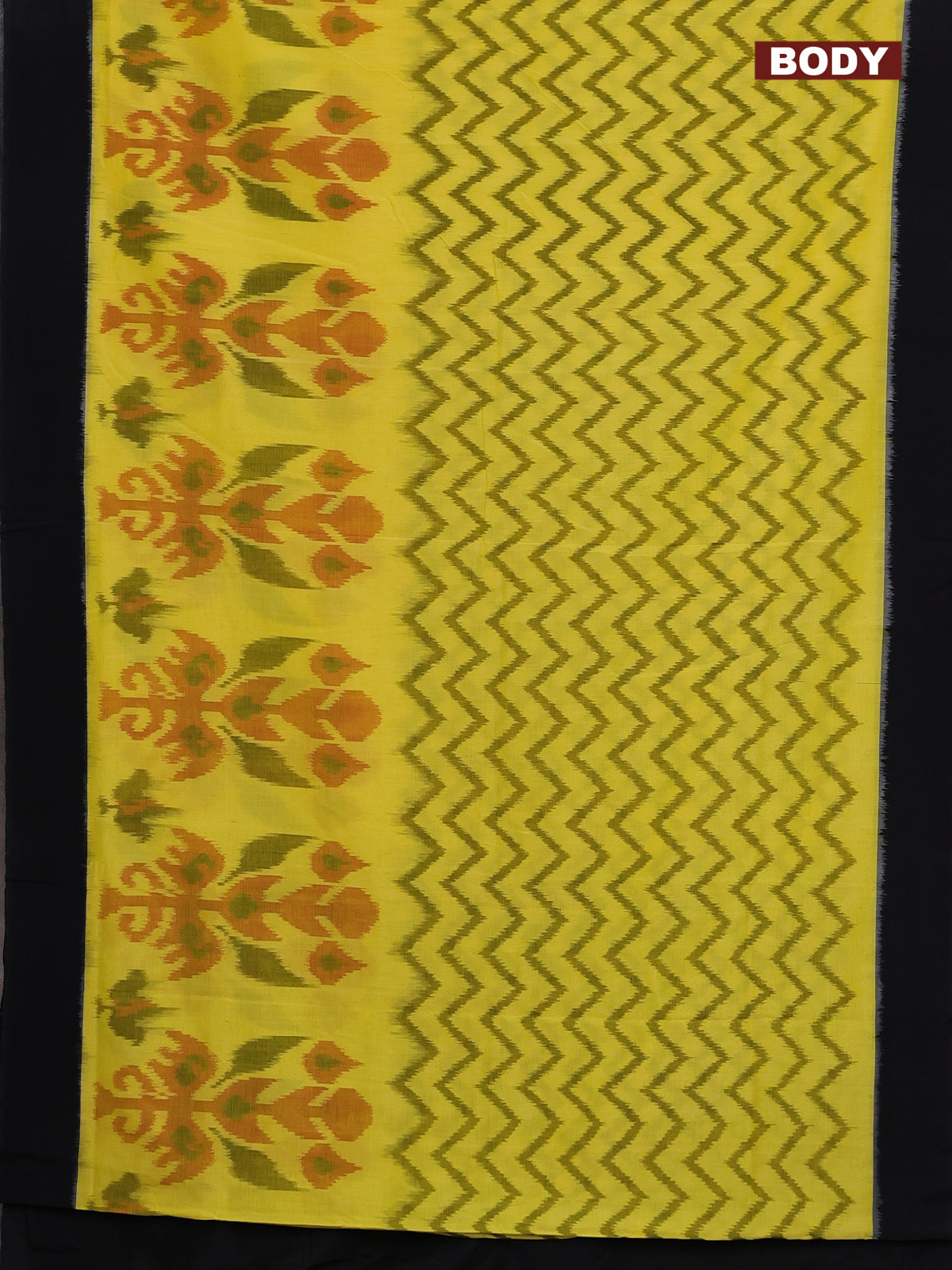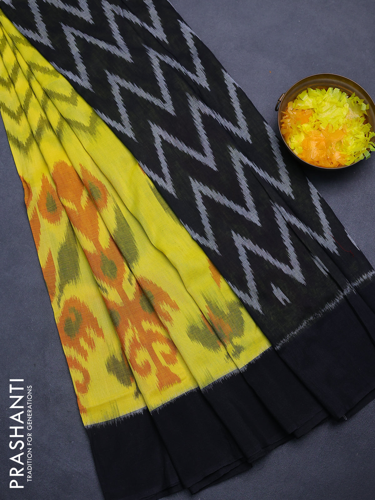 Ikat cotton saree lime yellow and black with allover ikat weaves and simple border