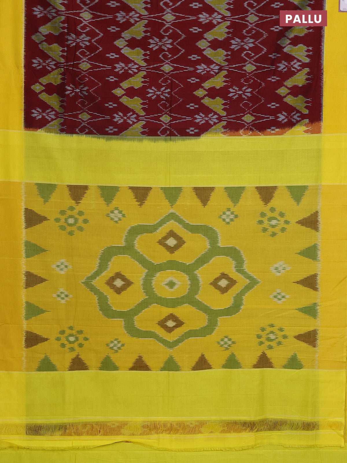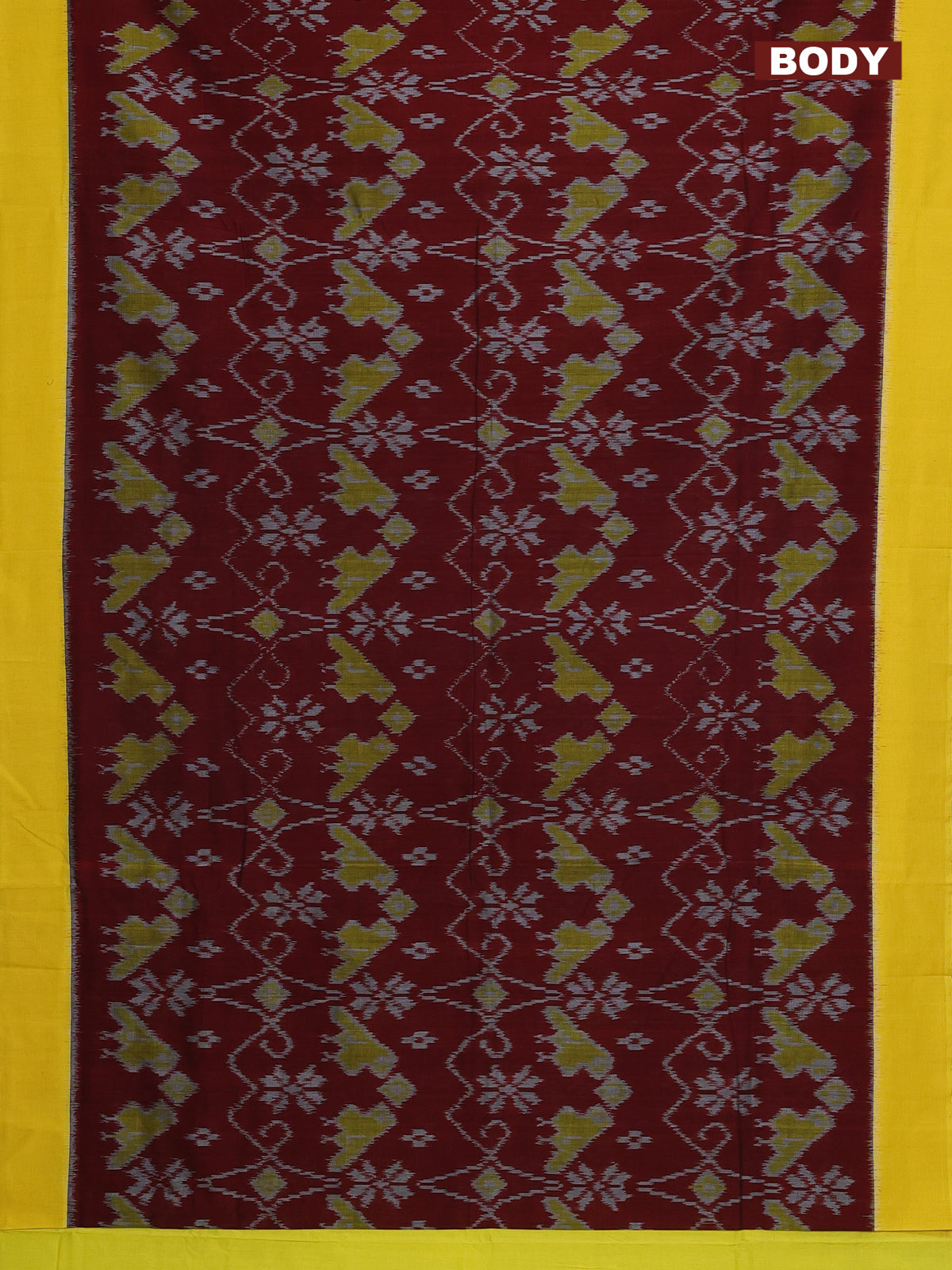 Ikat cotton saree maroon and yellow with allover ikat weaves and simple border