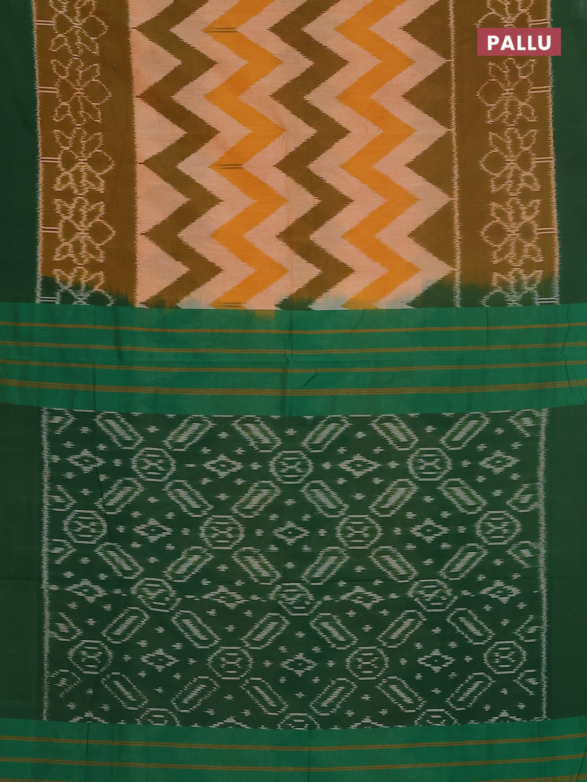Ikat cotton saree multi colour and green with allover ikat weaves and simple border