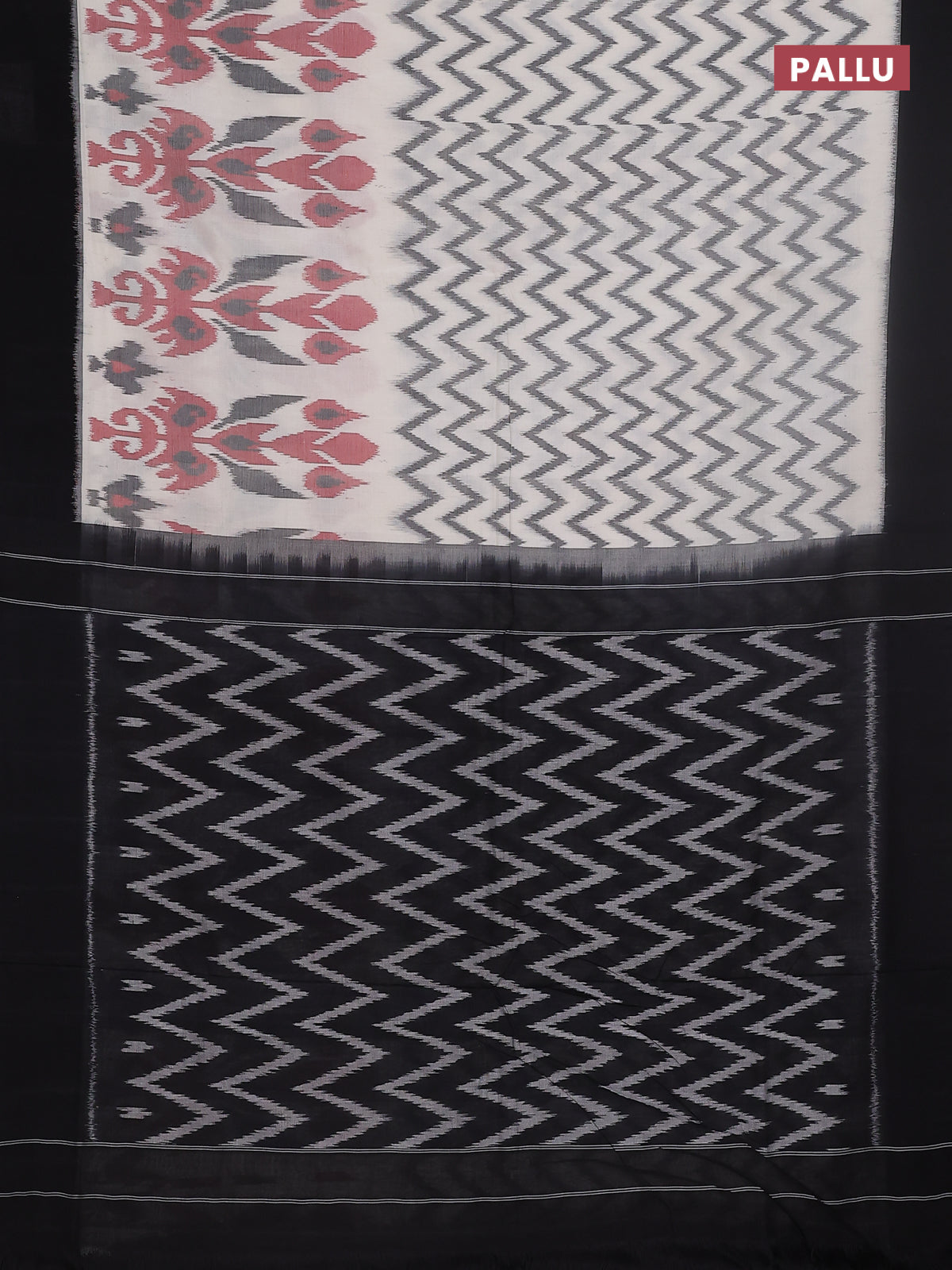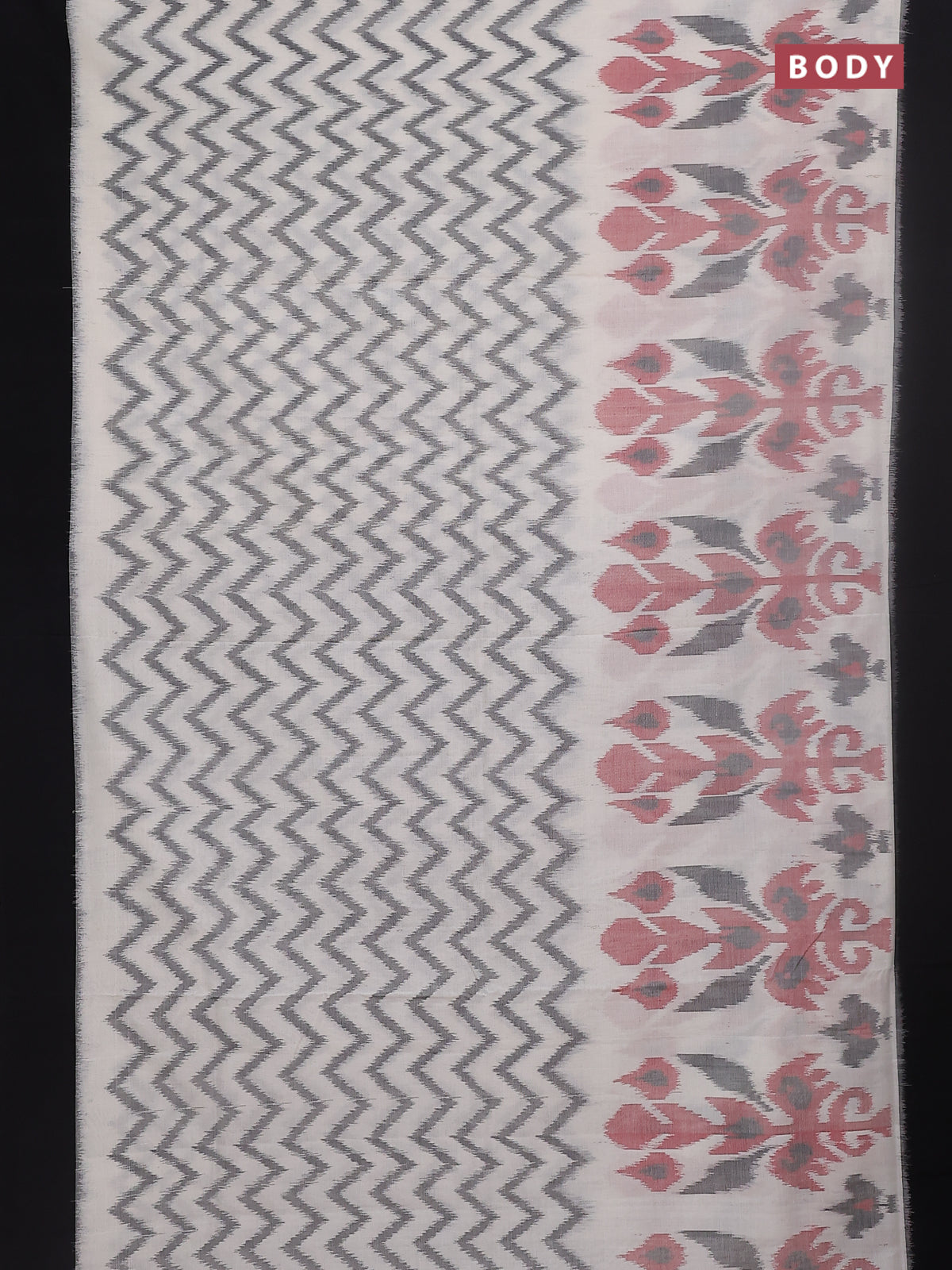 Ikat cotton saree off white and black with allover zig zag ikat weaves and simple border