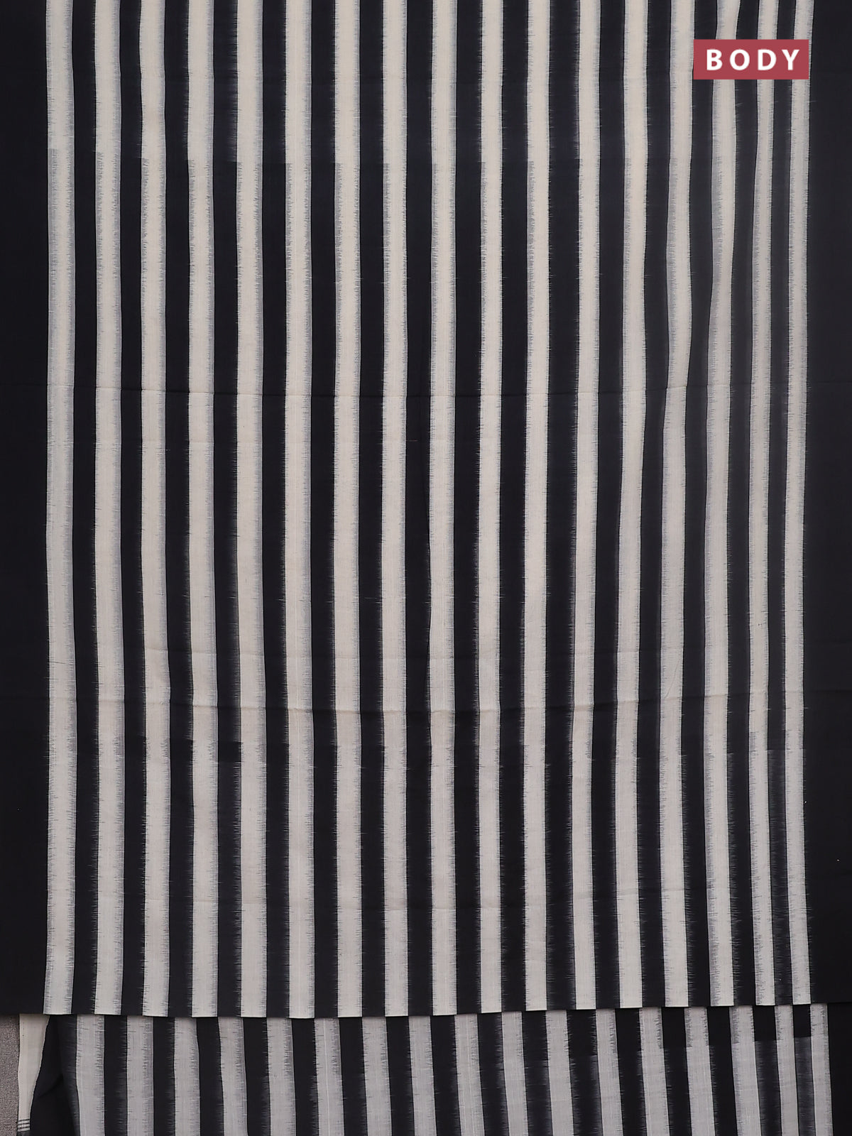 Ikat cotton saree off white. and black with stripes pattern and simple border