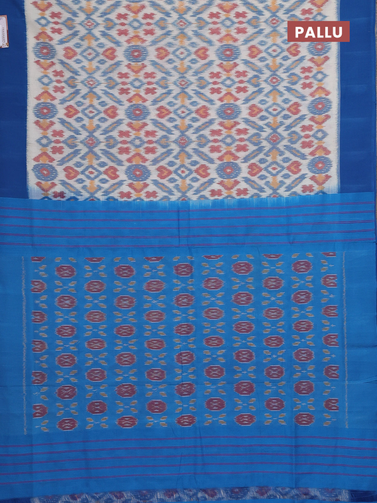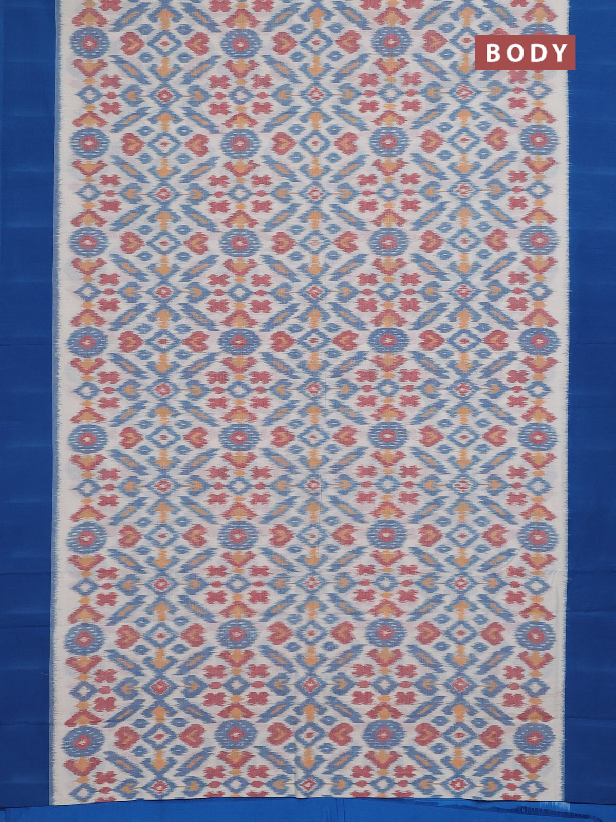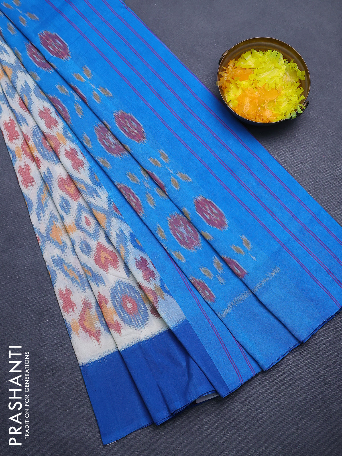 Ikat cotton saree off white and cs blue with allover ikat weaves and simple border