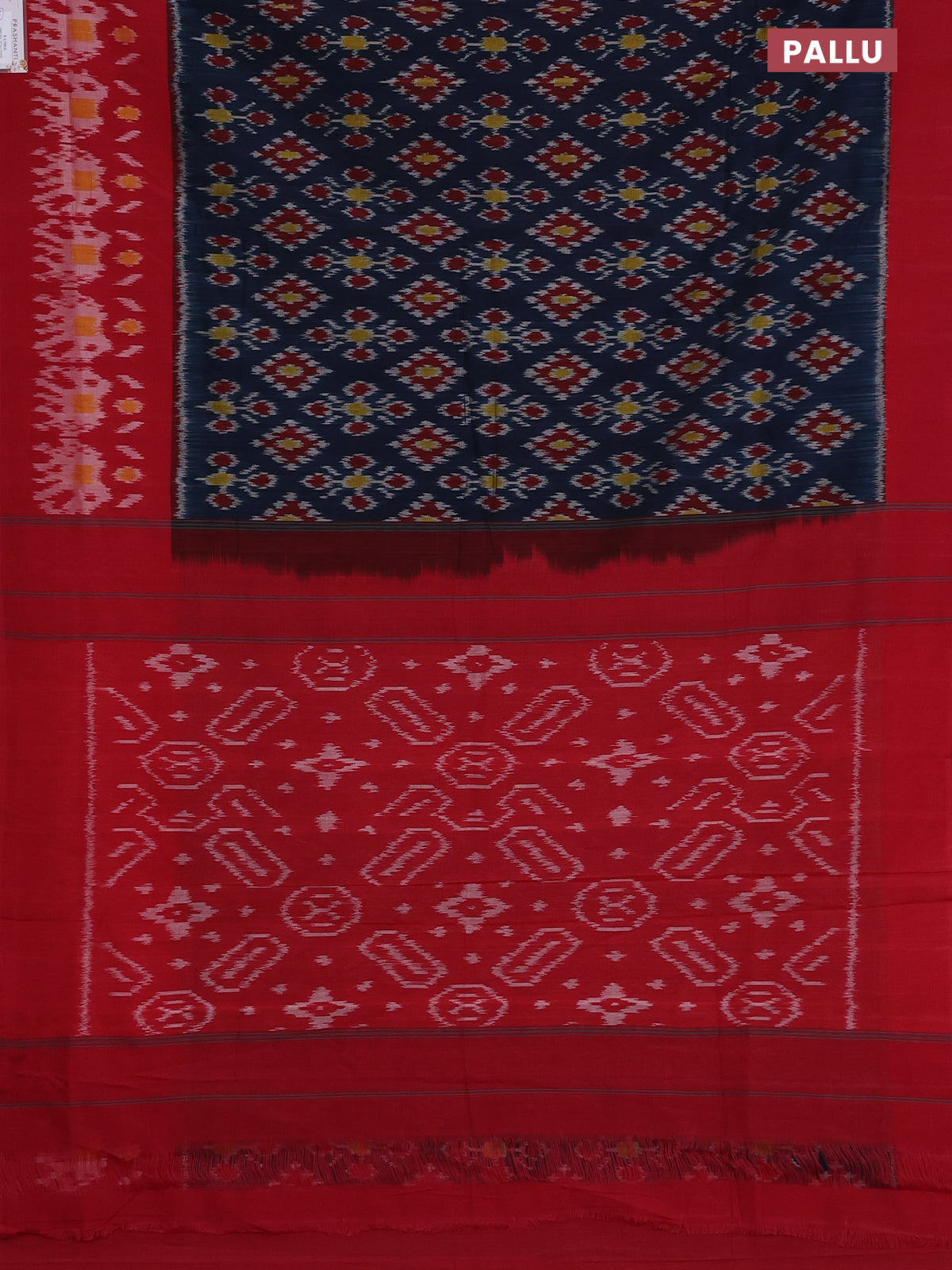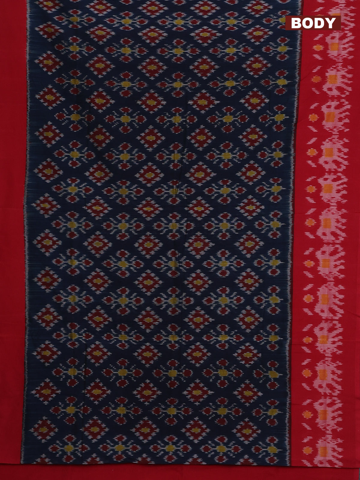Ikat cotton saree peacock blue and red with allover ikat weaves and long ikat woven border